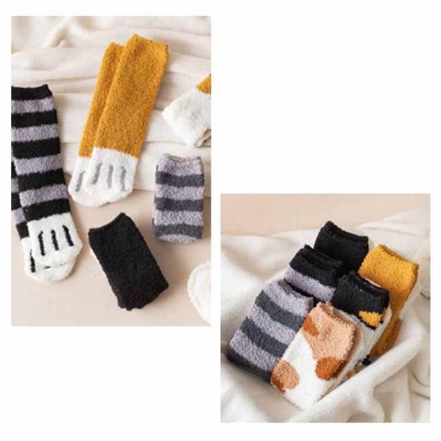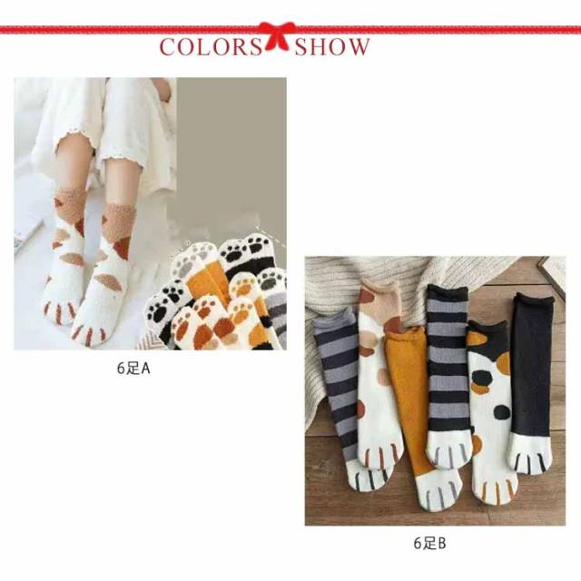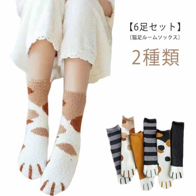 ソックス ボア かわいい 【6足セット】もこもこ 靴下 猫足 レディース もこもこ ねこ ソックス セット 2種類 6足セット 23-25cm かわいい 可愛い くつ下 猫 ネコ モコモコ