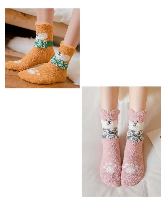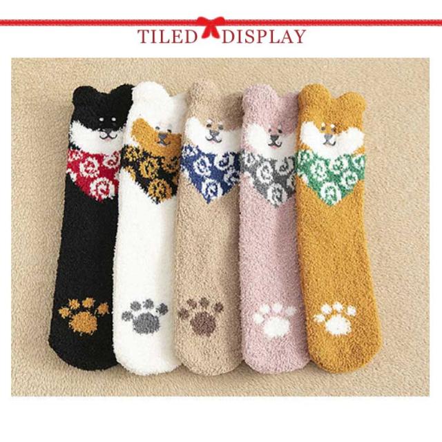 | ふわふわ素材で足元ぽかぽか! かわいい柴犬に癒される柔らかなルームソックス。 大人用フリーサイズで寒い日の冷え対策に。 おうち時間も楽しく過ごせます♪ | |