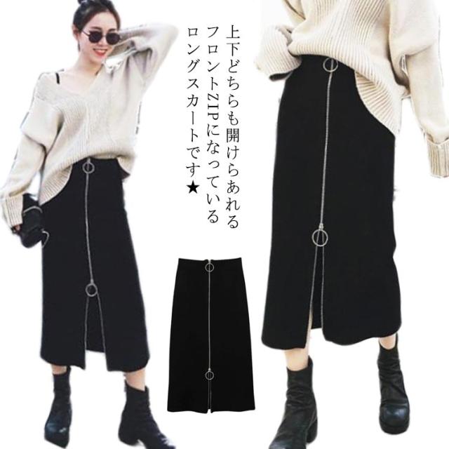 スカート レディース ロングスカート タイトスカート フロントファスナー ペンシルスカート ミモレ丈 ロング丈 ハイウエスト 送料無料 フロントZIP タイトスカート Hライン 細身 タイト スカート