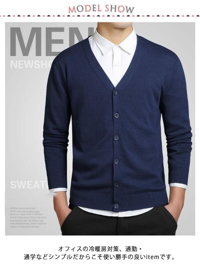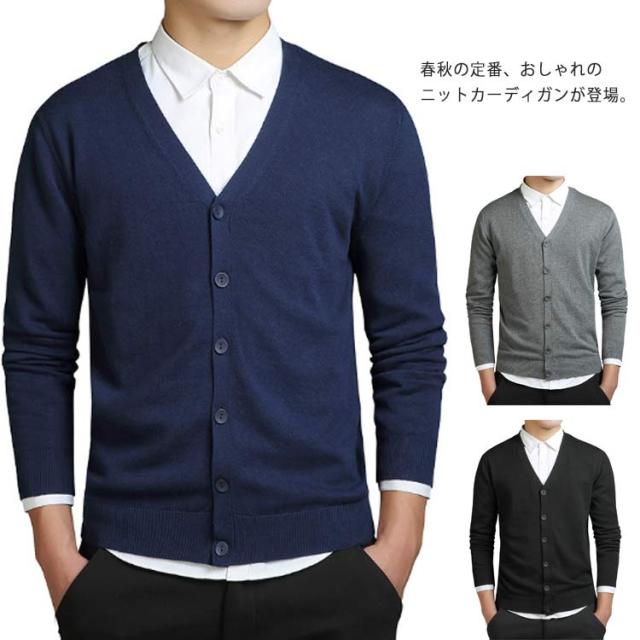 ニットソーカーディガン メンズ ニットカーディガン 無地 ボタン Vネック 長袖 カーディガン 春 カーディガン