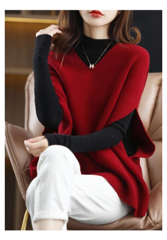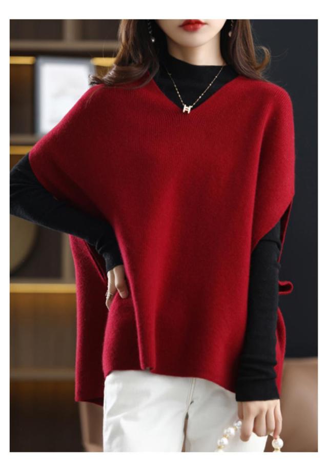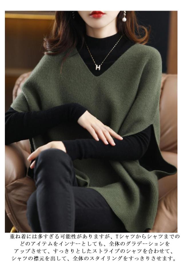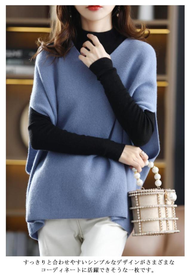 秋 レディース ウール20-30% ノースリーブ 冬 Vネック レイヤード ニットベスト 大きいサイズ 重ね着 ウールセーター レディース ノースリーブ Vネック 着痩せ ゆったり ニット 体型カバー 無地