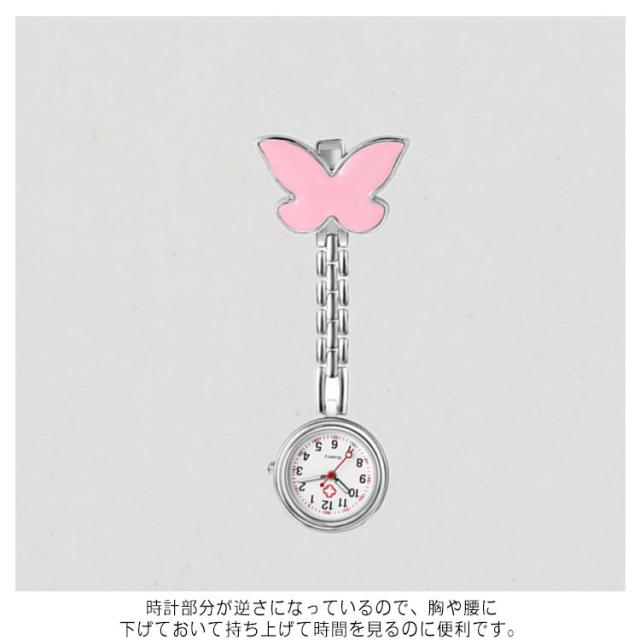 クリップ時計 メンズウォッチ 介護 懐中時計 【送料無料】ナース時計 看護師 逆さ文字盤 かわいい バタフライ 蝶柄 レディースウォッチ 男女兼用 シンプル 逆さ時計 シルバー クオーツ 電池式 コンパクト ナースウォッチ