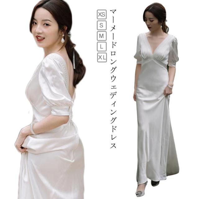 披露宴 半袖 プリーツ 披露宴 パフスリーブ おしゃれ 撮影 Vネック 二次会 ウエディングドレス 挙式 2次会 結婚式 花嫁 ドレス 前撮り 袖あり フォトウエディング ハネムーンフォト レース 二次会