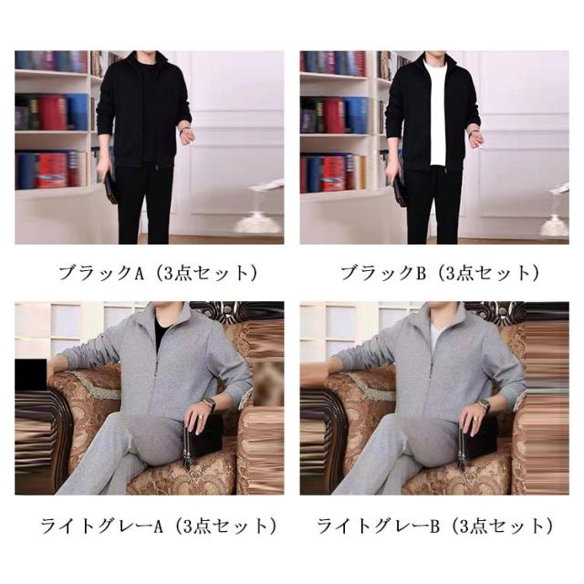 楽パン ジャージ 部屋着 ロンT トップス パンツ ジャージ ジッパー 公園 ルームウェア アクティブウェア セットアップ メンズ スウェット 上下セット ワンマイルウェア 散歩 ジョギング 大きいサイズ 3点セット