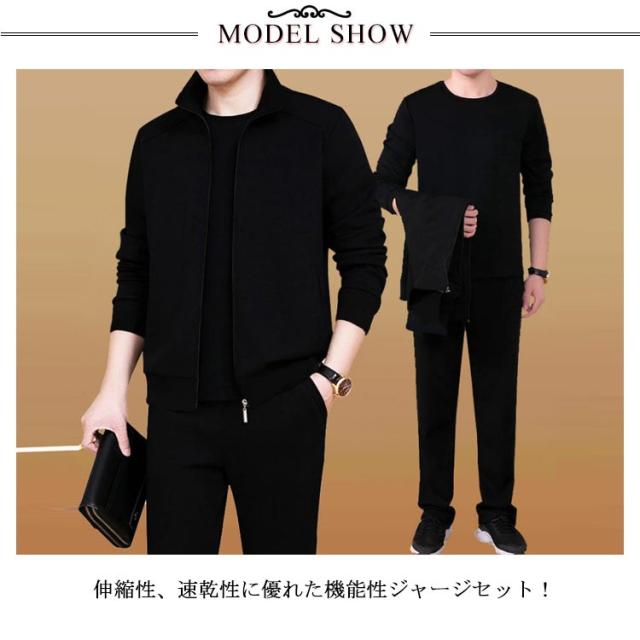| お得な3点ジャージセット★ トップス+パンツ+ロンT(ホワイトとブラック選べる)? 伸縮性、速乾性に優れた機能性ジャージセット! リブ加工された袖部分はストレッチが効いているので伸縮性に優れのびのび動くのに最適。 ボトムスのウエスト部分はゴムひもで調節可能。 お出かけや旅行など様々なシーンで活躍できる、お洒落でカッコイイセットアップです。 もちろん、プレゼントとしてもおすすめ♪ | |