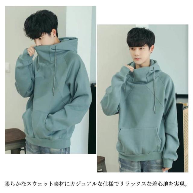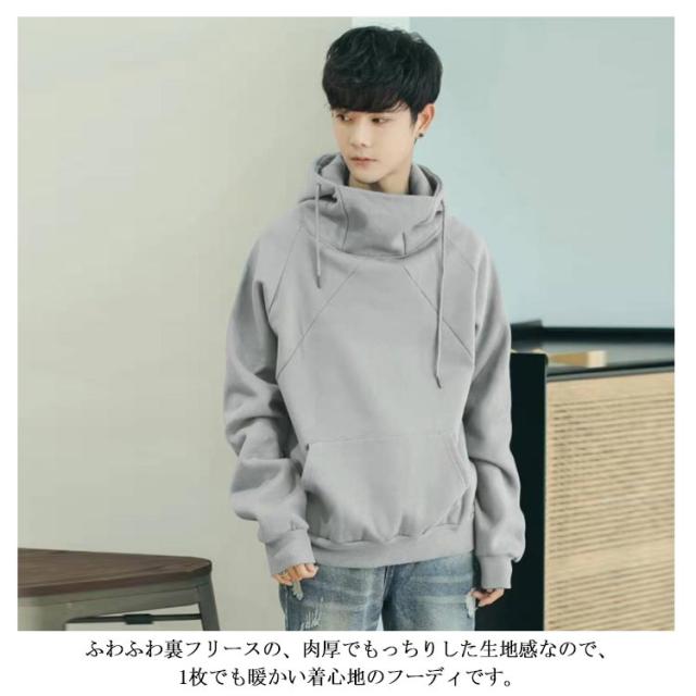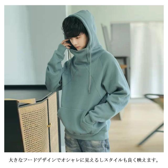 レディース メンズ 男女兼用 フードパーカー フード付き トレーナー スウェット パーカー トップス お洒落 ハイネック 長袖 ジャージ タートルネック ポケットつき 裏起毛 ゆったり ビッグシルエット 暖かい カジュアル フーディ