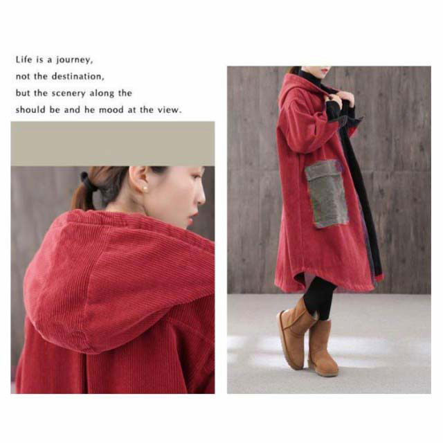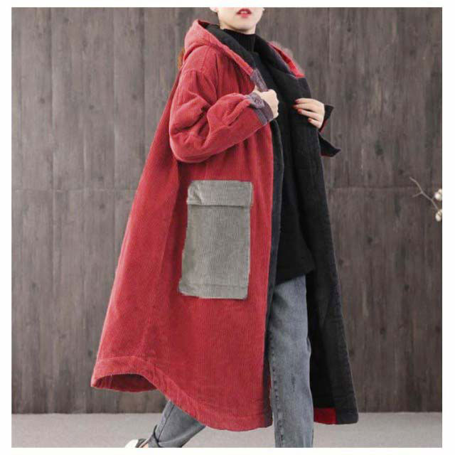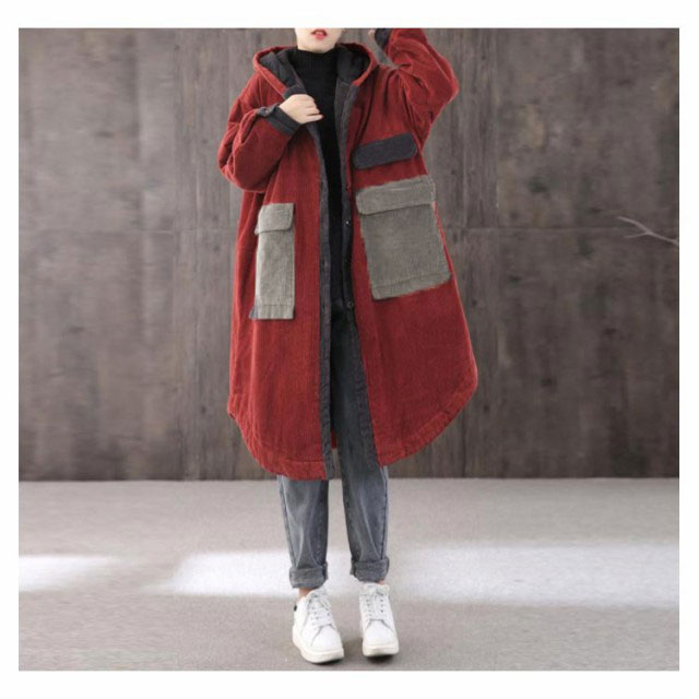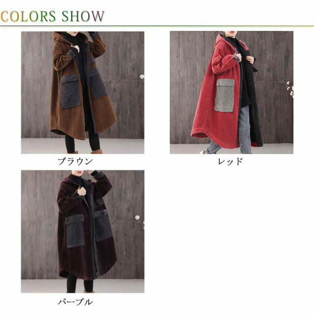 | 秋冬感を演出してくれるコーデュロイ素材のロングコート。 ボリューム感のあるふんわりAラインシルエットで体型カバーも叶えてくれます。 大きめのフードデザインで顔回りをシャープに見せてくれる効果も期待できます。 両サイドに大きなポケットが付いており、実用性抜群。 デートコーデからオフィス用まで幅広く使えるヘビロテな一枚。 | |