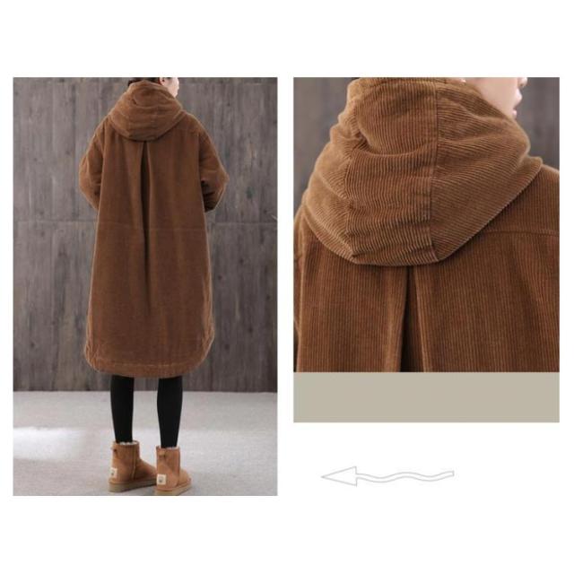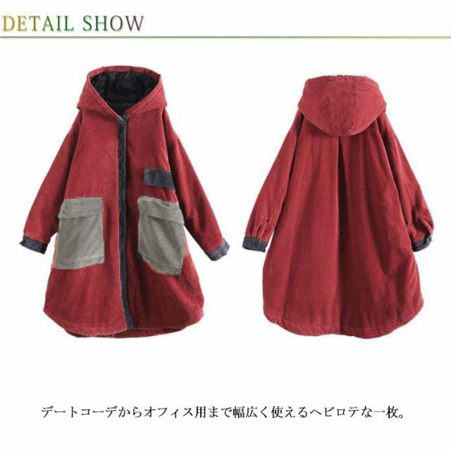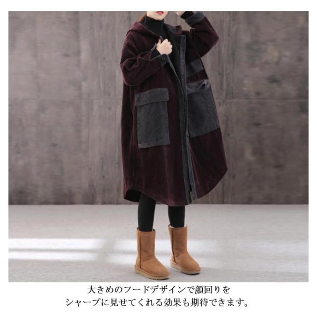 コーデュロイ 中綿 裏地あり 大人 あったかアウター ロングコート チェスターコート 厚手 秋冬 コーデュロイコート レディース ロング丈 Aライン アウター コート ドルマン ゆったり ビッグシルエット 体型カバー フード付き