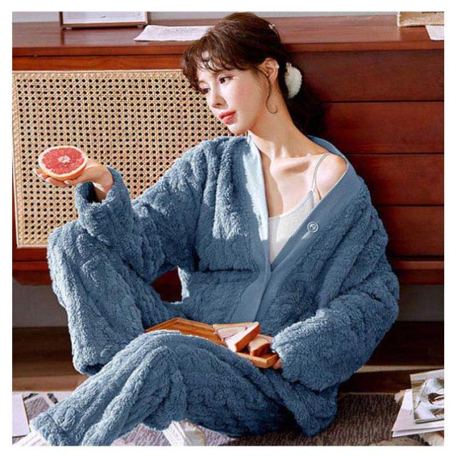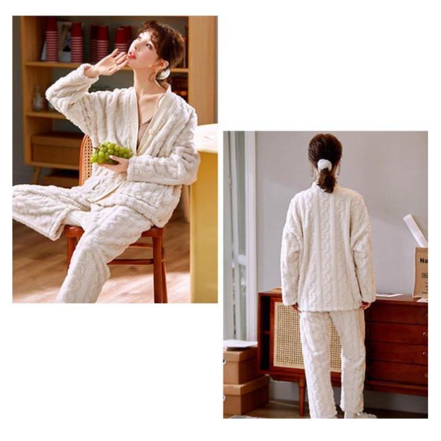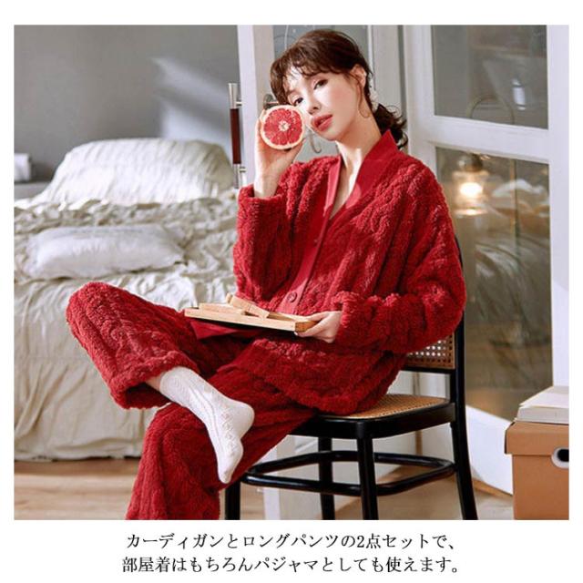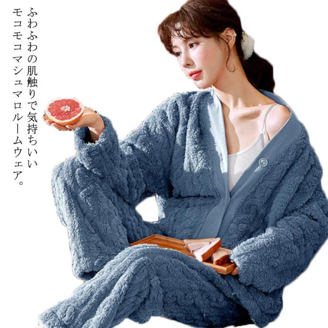 2点セット ルームウェア 上下セット レディース もこもこ 防寒 マシュマロ ルームウェア 裏起毛 カーディガン 前開き 秋冬 パンツ ケーブル編み パジャマ ストレート あったかい 部屋着 着る毛布 長袖 かわいい パジャマ