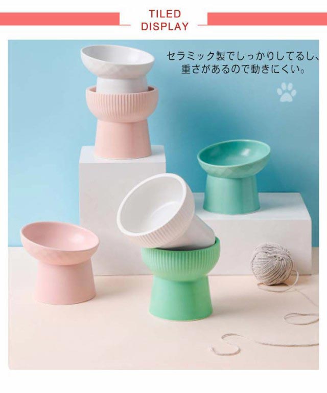 | 食べやすい高さに設計されたハイスタンドタイプのペット用ボール。 セラミック製でしっかりしてるし、重さがあるので動きにくい。 汚れが落としやすく臭いもつきにくい、お手入れがラクラク。 食べやすい適度な角度に設計されており、食道に溜まったフードが戻ってしまうことも防げます。 首や腰に負担を掛けさせたくない老犬、老猫にもおすすめです。 | |