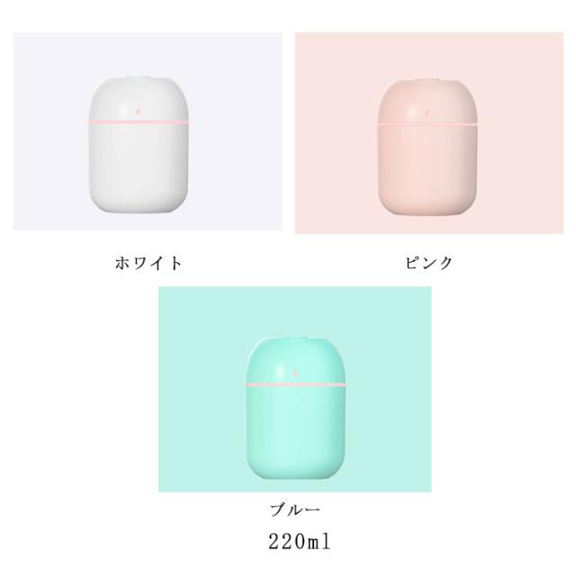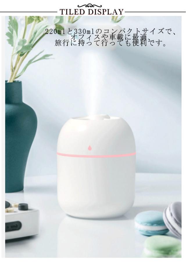 加湿器 220ml USB給電式 卓上 ミニ加湿器 小型 乾燥予防 花粉症対策 加湿器 アロマ対応 ギフト 330ml LEDライト オフィス 車載 ディフューザー デスク コンパクト 静音 贈り物 ミストボックス
