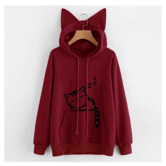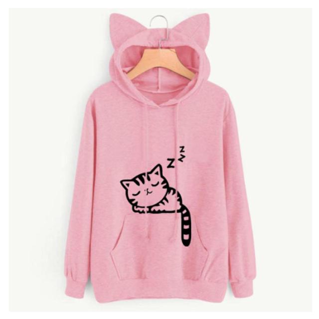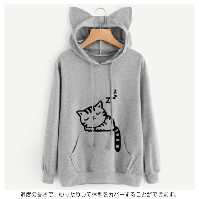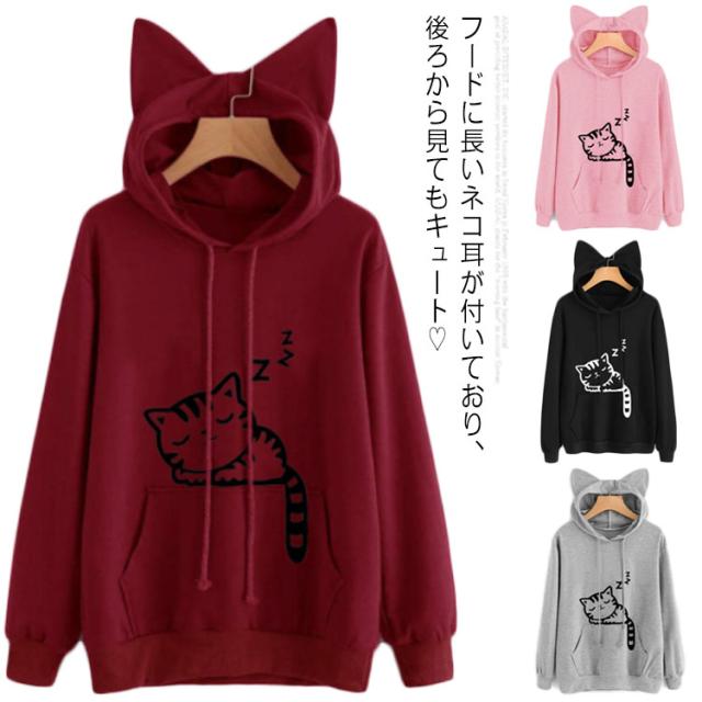 裏起毛 パーカー 猫柄 猫耳 かわいい トップズ スウェット 部屋着 ルームウェア ねこ ネコ ビッグパーカー フード付きパーカー カジュアル