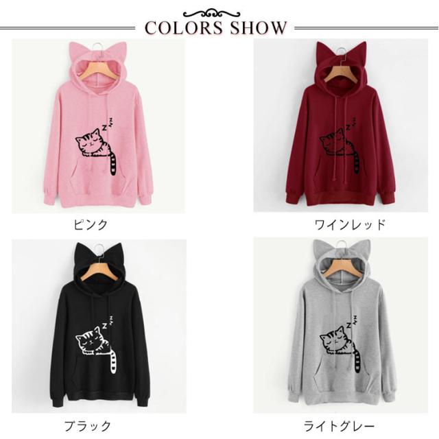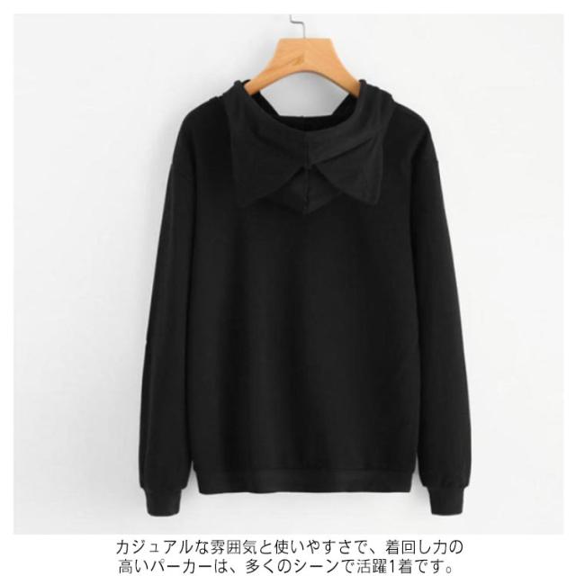 | フードに長いネコ耳が付いており、後ろから見てもキュート? 適度の長さで、ゆったりして体型をカバーすることができます。 肌触りがいい、オリジナルなデザインのパーカーは友達にプレゼントをおススメ。♪ カジュアルな雰囲気と使いやすさで、着回し力の高いパーカーは、多くのシーンで活躍1着です。 | |