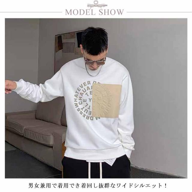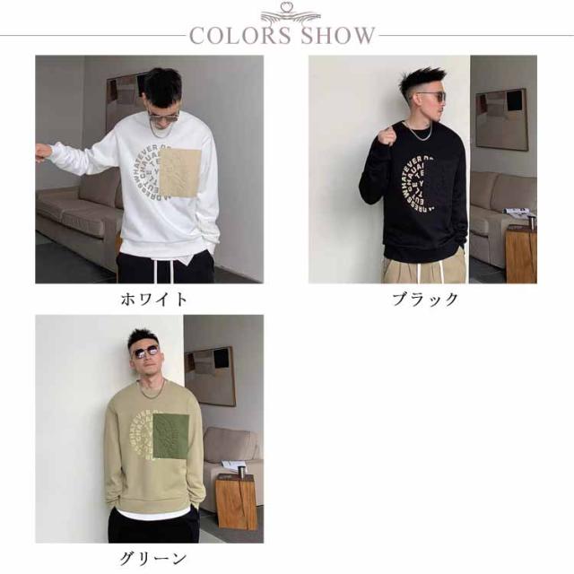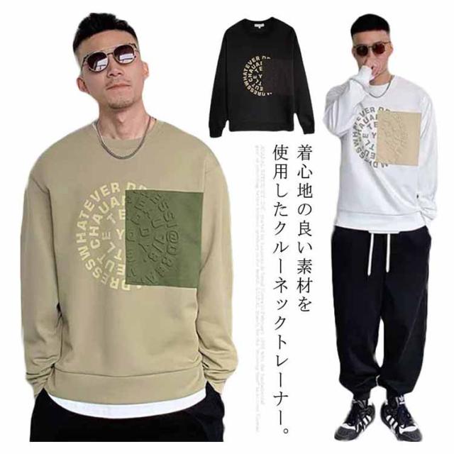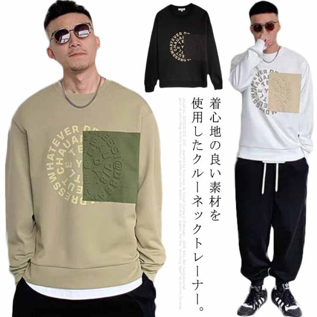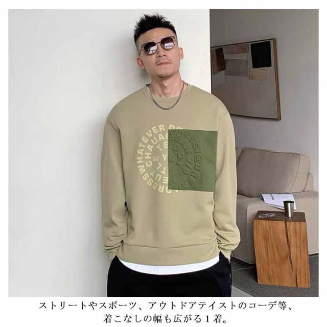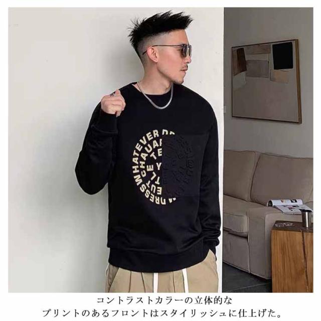 トレーナー スウェット おしゃれ アメカジ メンズ コントラストカラー 大きいサイズ 立体的 プリント スエット 冬服 クルーネック 春 長袖 ストリート トップス カジュアル 秋物