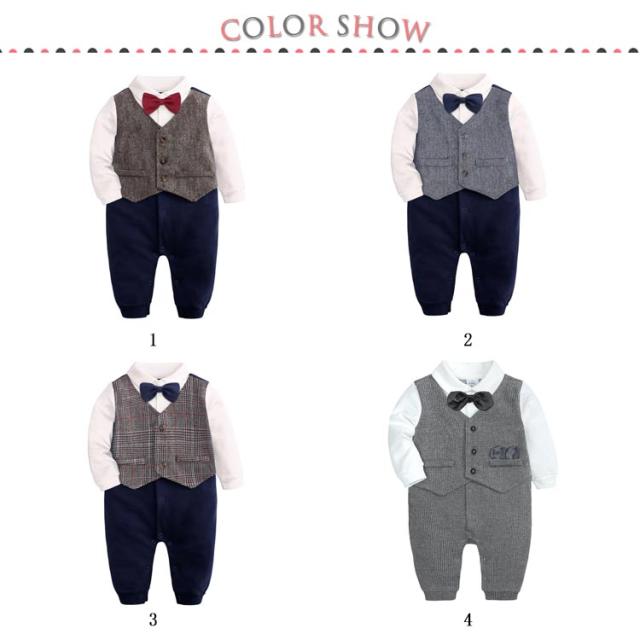 子供服 ベビー ロンパース ベビー服 襟付 男の子 フォーマルスーツ 男児 カバーオール ベスト つなぎ 長袖 蝶ネクタイ キッズ 80cm セットアップ風 重ね着風 前あき60cm 70cm ボーイズ