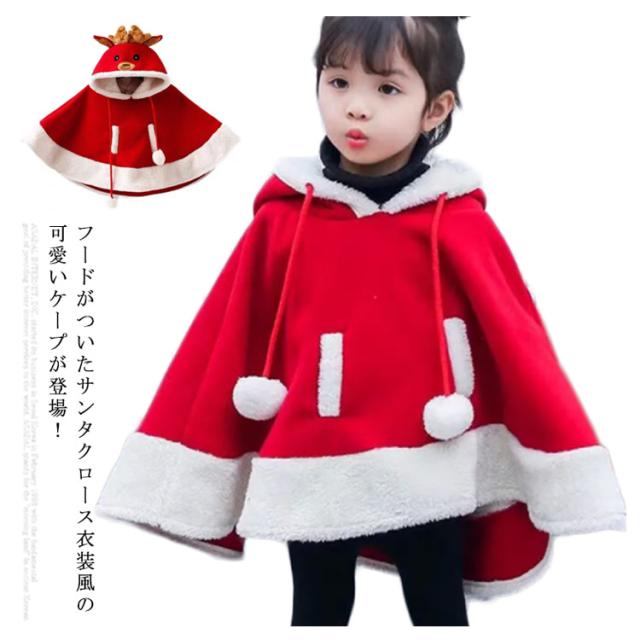 フード付きケープ サンタ 子供服 コスプレ衣装 クリスマス トナカイ トナカイ 冬 マント 演出服 コスチューム ポンチョ パーティー イベント キッズ服 ジュニア ベビー ダンス 仮装 女の子