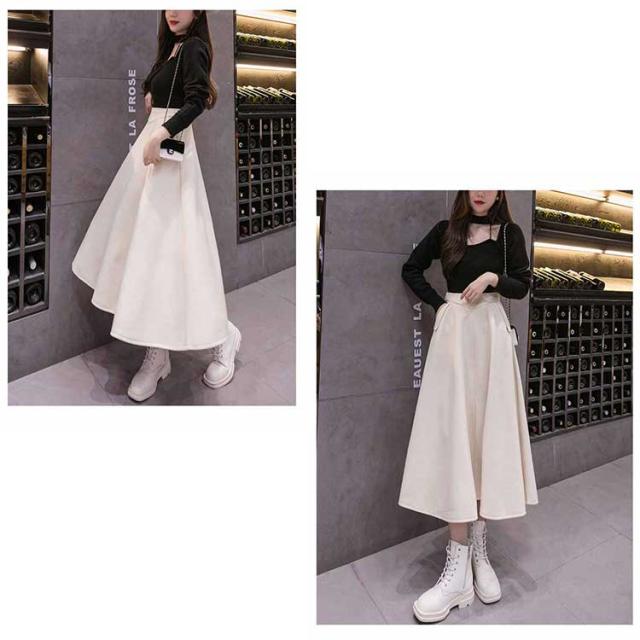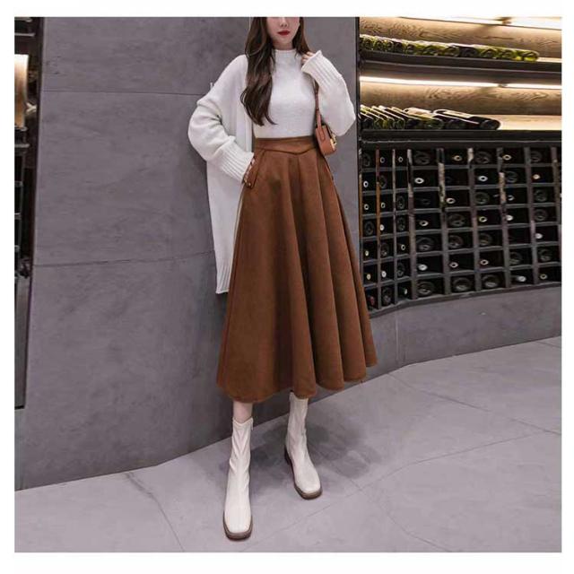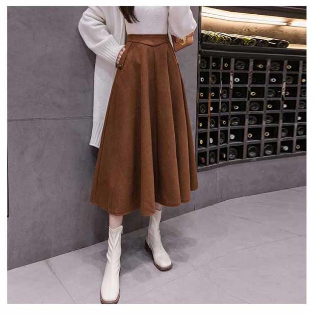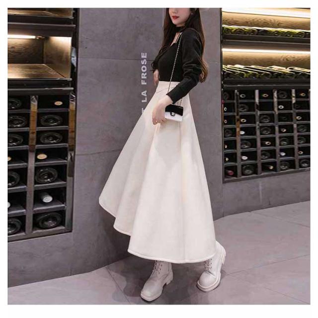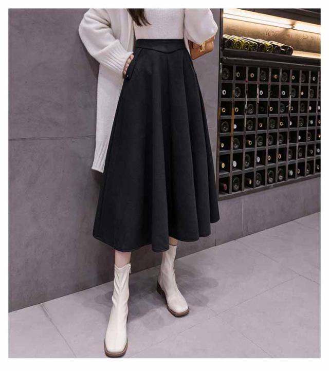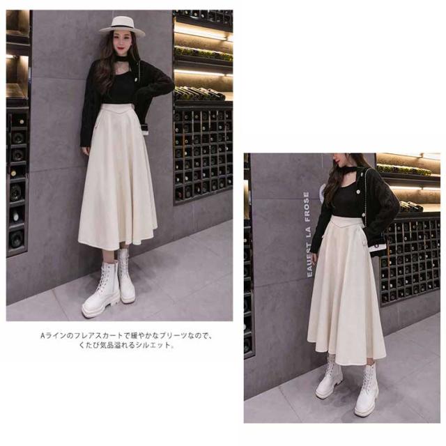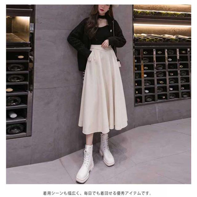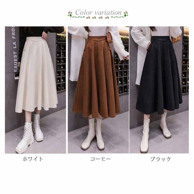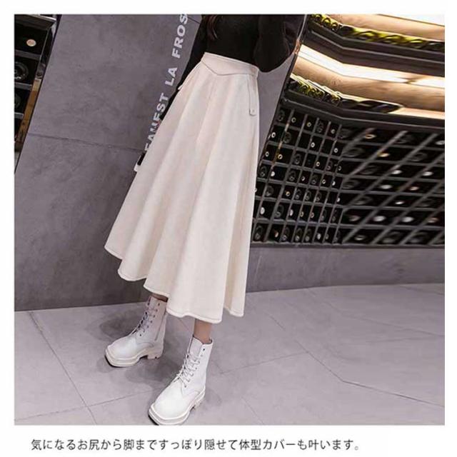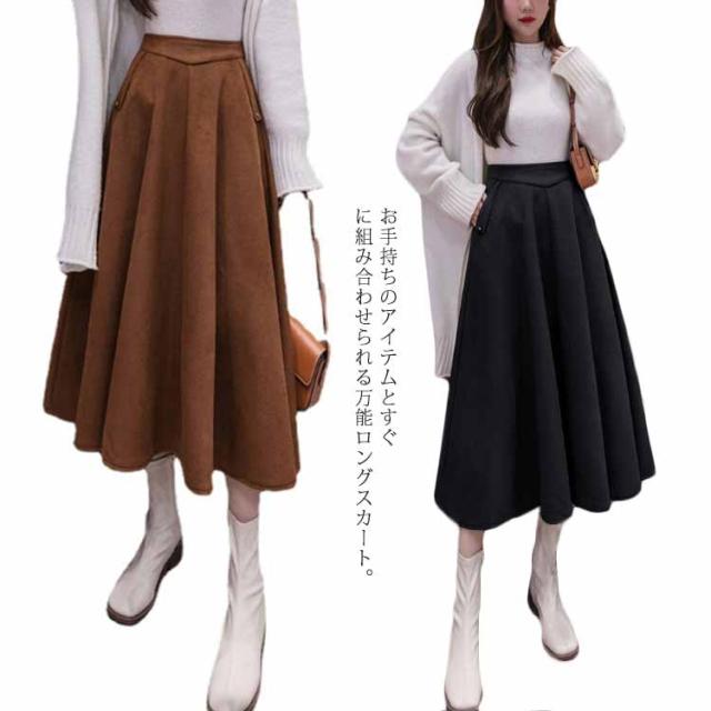 フレアスカート ロング丈 秋冬 Aライン レディース 厚手 ボトムス 体型カバー マキシスカート 着痩せ 通勤 ハイウエスト お洒落 普段着 キレイめ シンプル