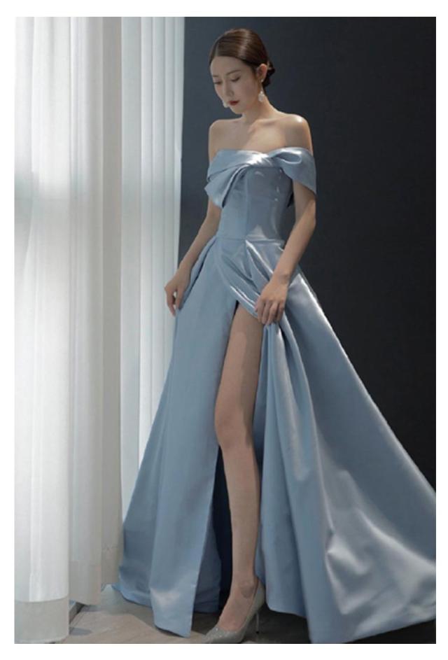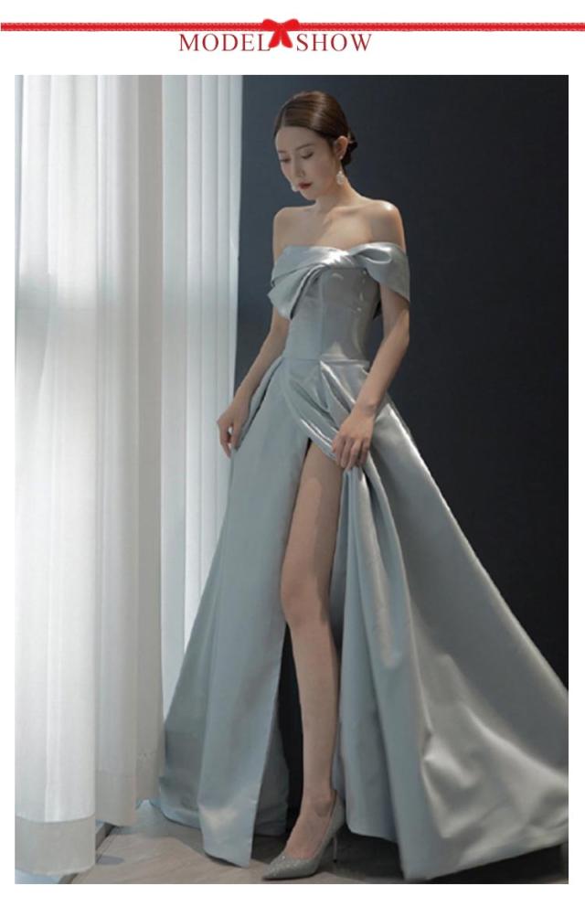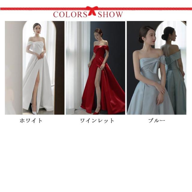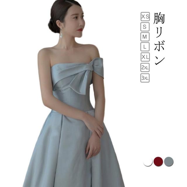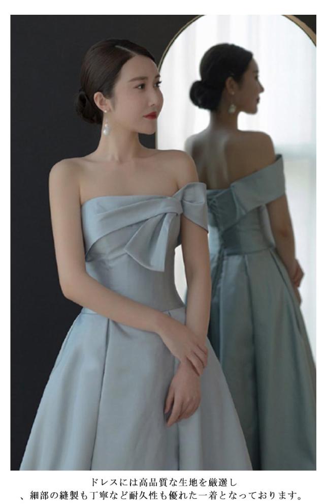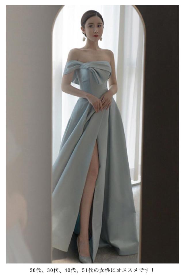 Aライン ロングドレス オープンショルダー パーティードレス リボン ウェディングドレス ロングワンピース ロング丈 ドレス パーティドレス 舞台衣装 演奏会用 ウエディングドレス ステージドレス 20代 30代 40代 50代 ホワイト 白 ブルー