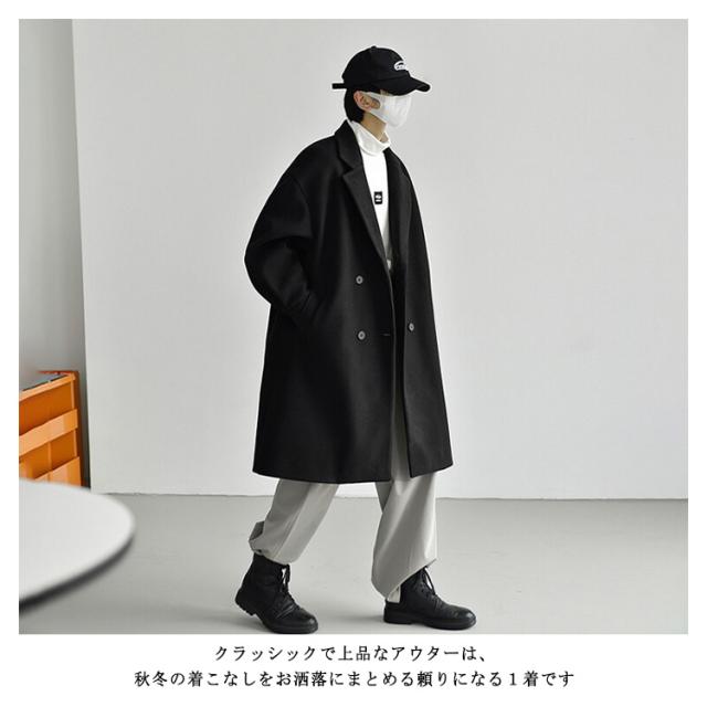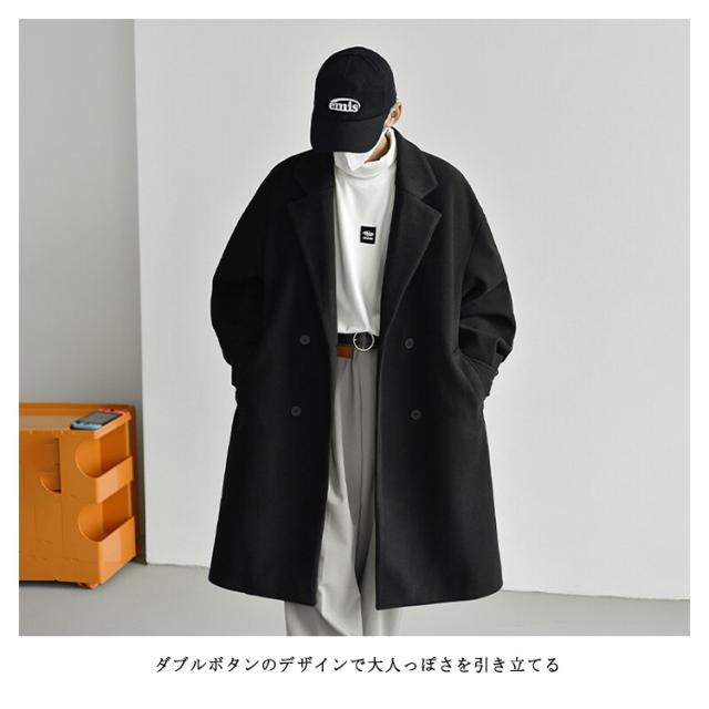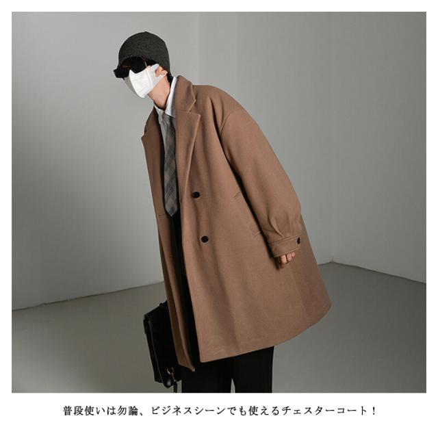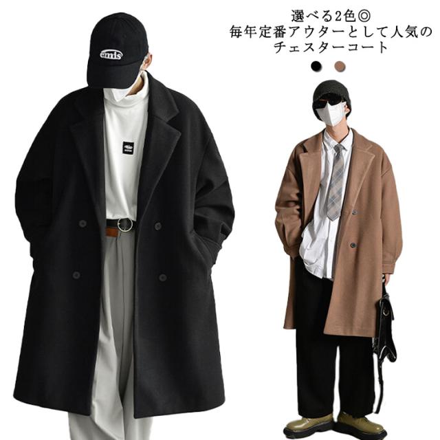 冬アウター チェスターコート ポケット付き ダブルボタン メンズ アウター 暖かい 長袖 厚手 ロング丈 ビジネスコート ロングコート コート チェスター あったか ジャケット シンプル 原宿系 お洒落 体型カバー 冬物 ロング丈