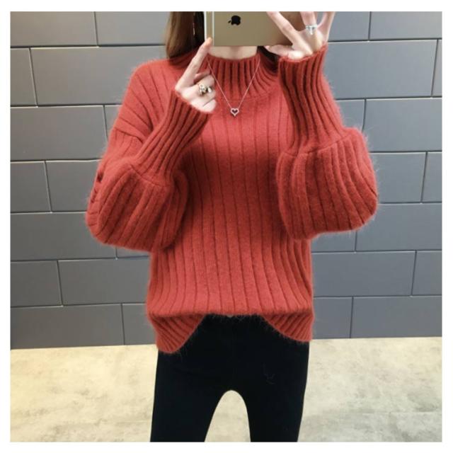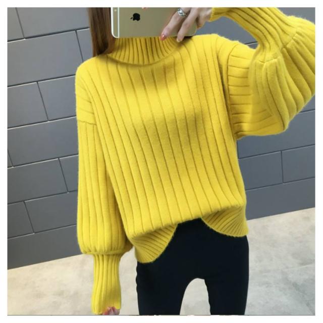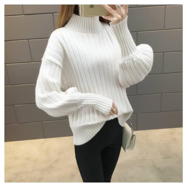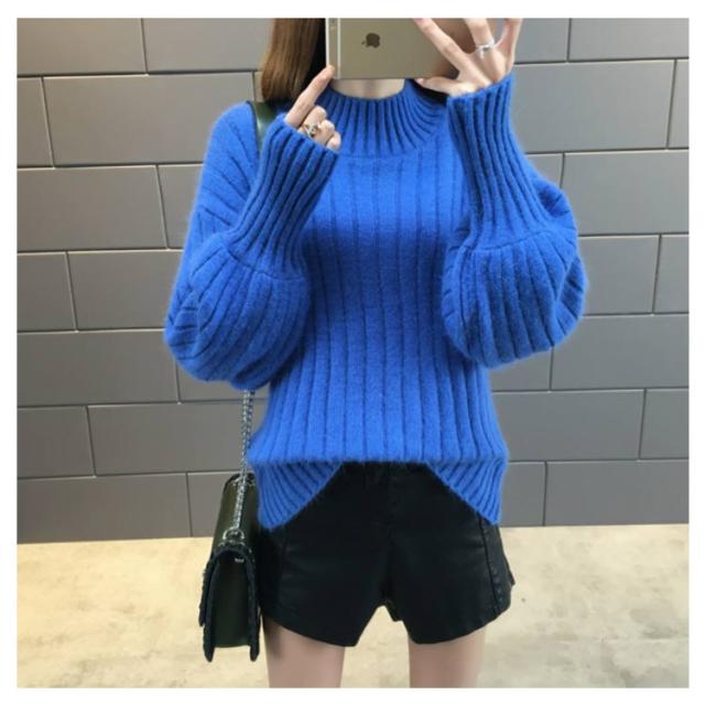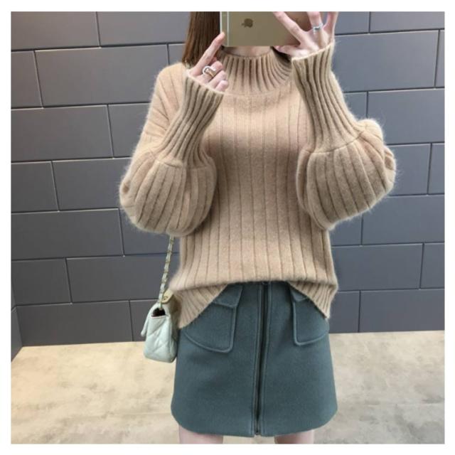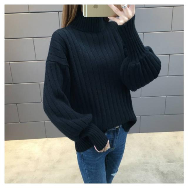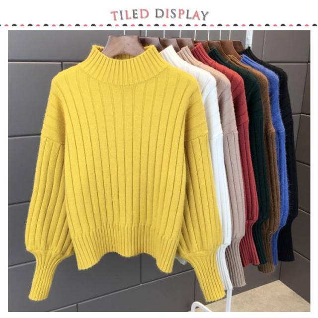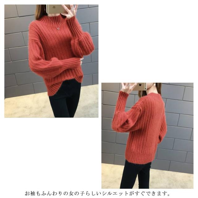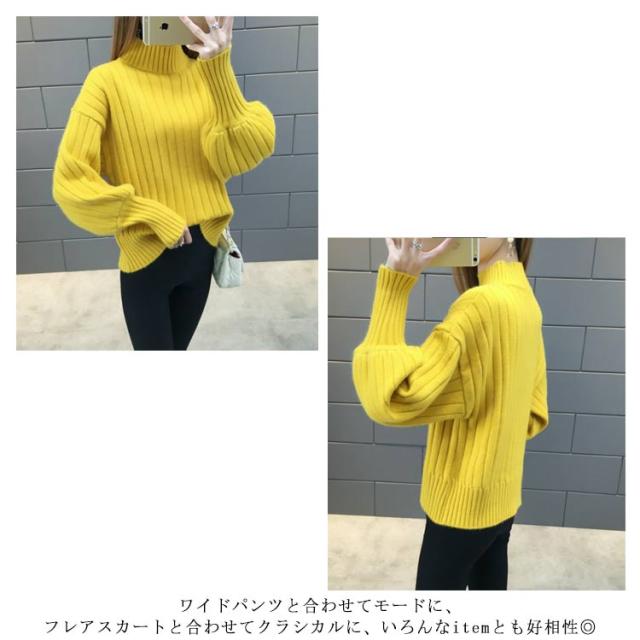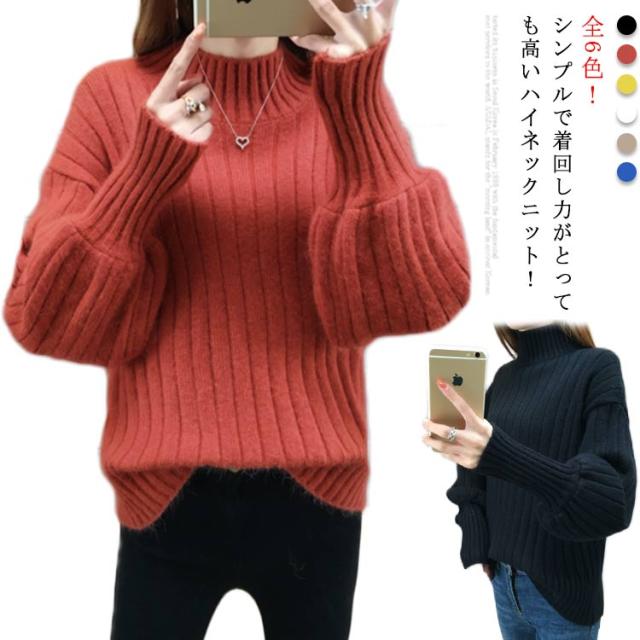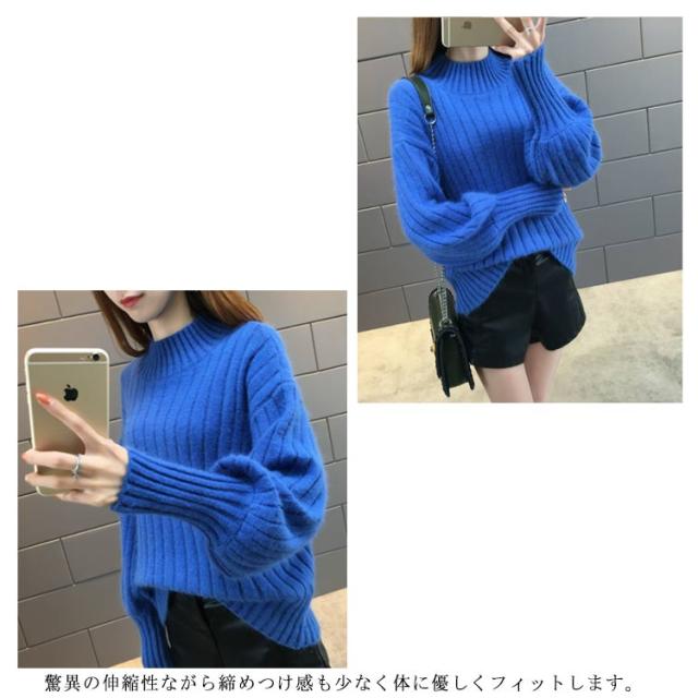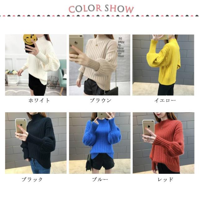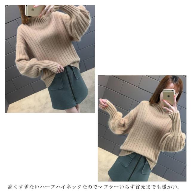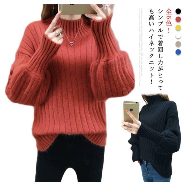 全6色!ニットセーター パフスリーブ リブ ニット セーター レディース トップス ハイネックニット リブニット ふんわり袖 長袖 秋冬 おしゃれ 大人可愛い 保温 無地