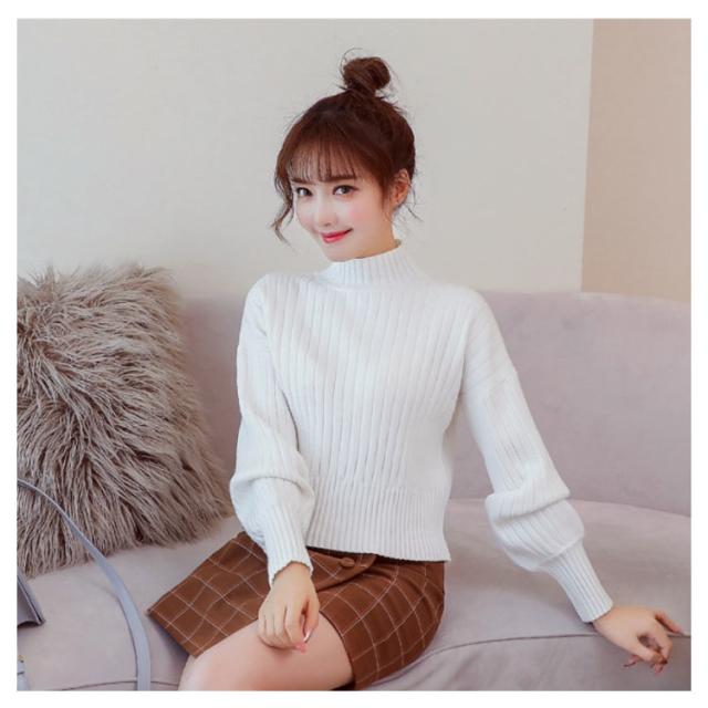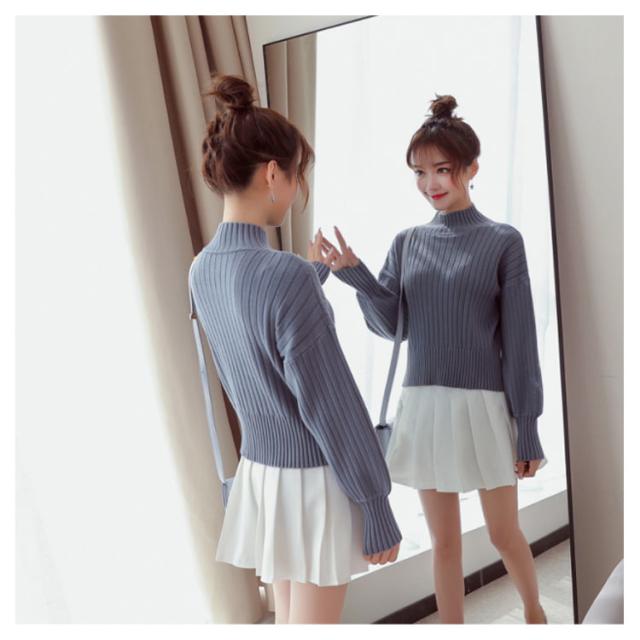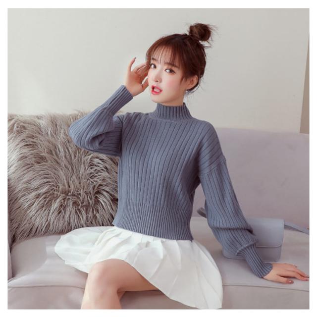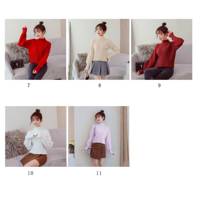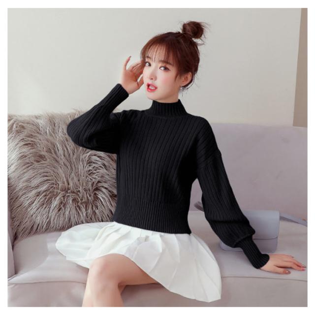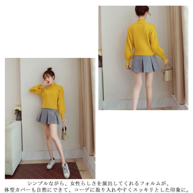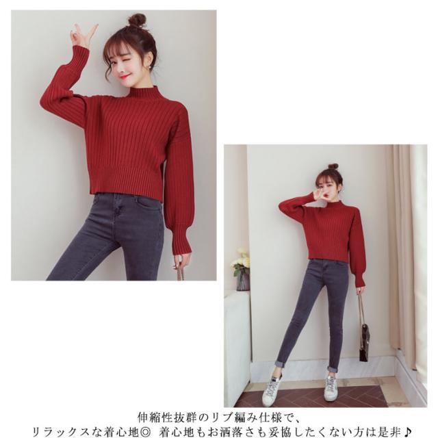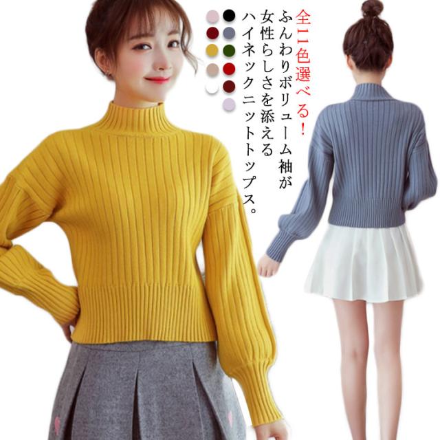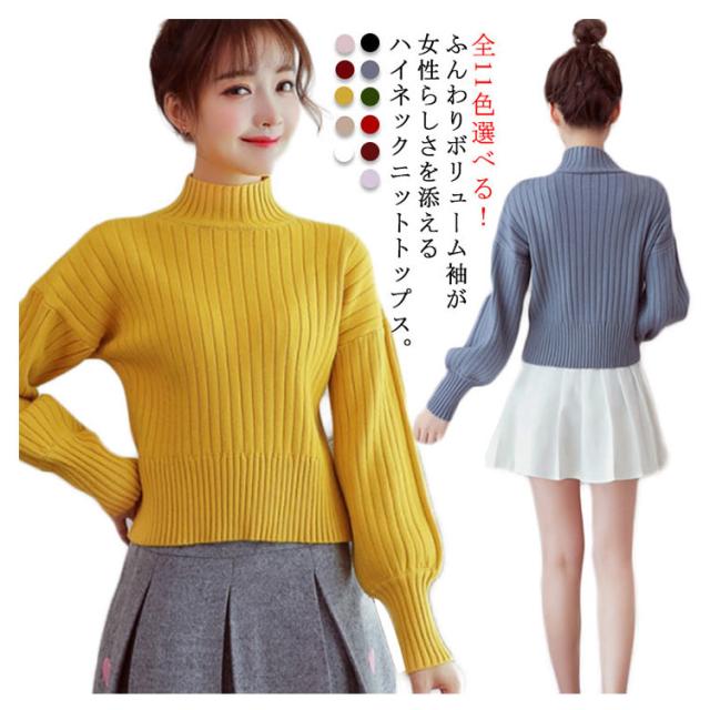 全11色選べる!ハイネック ニットトップス リブニット プルオーバー ニット セーター ショート丈 ドロップショルダー ドロップスリーブ ボリューム袖 可愛い お洒落 秋冬 おしゃれ 可愛い