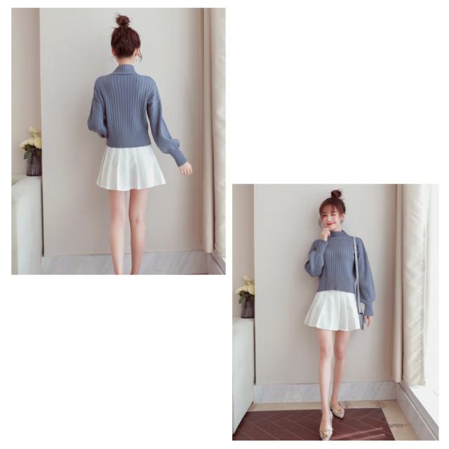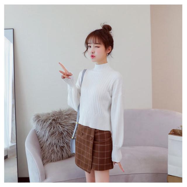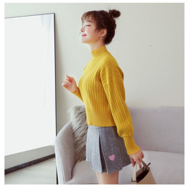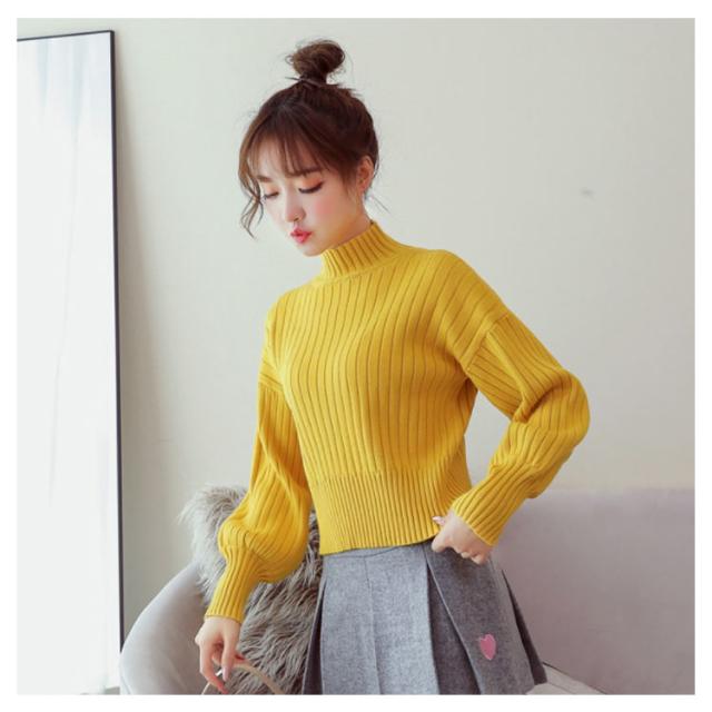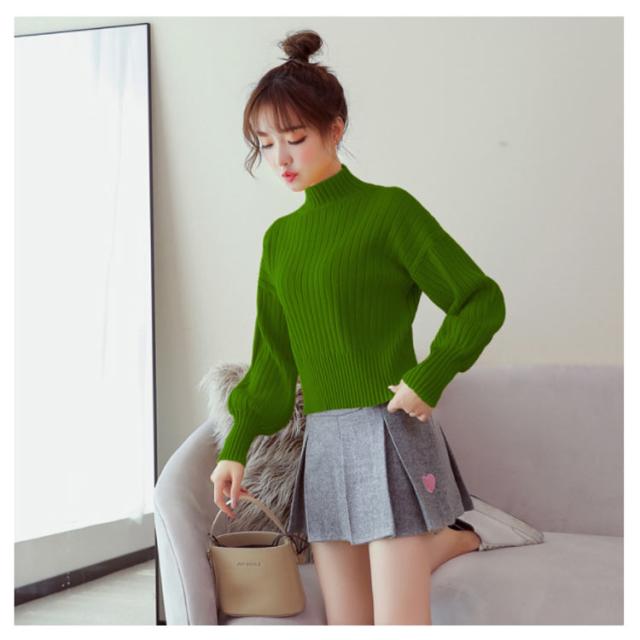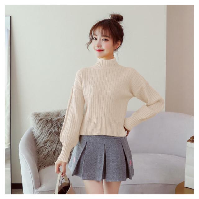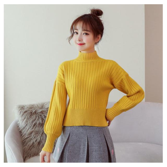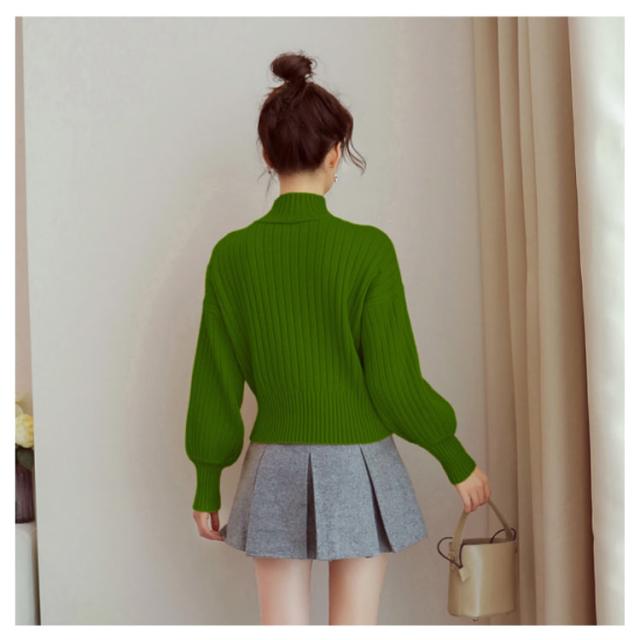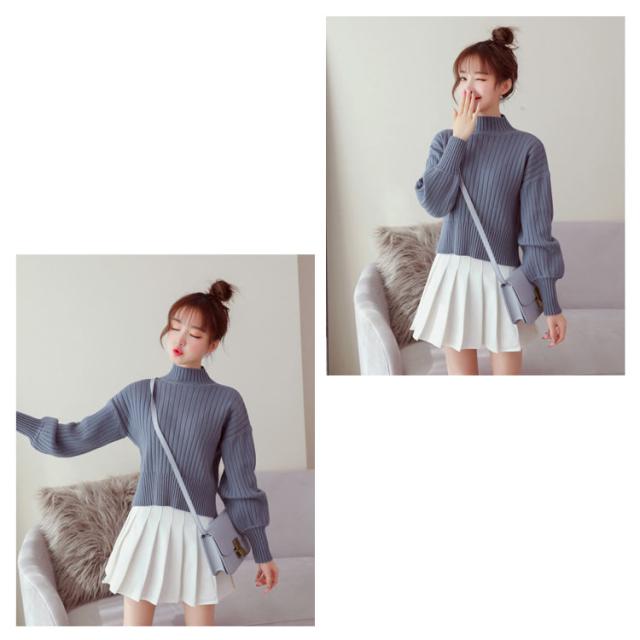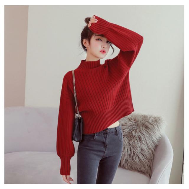 全11色選べる!ハイネック ニットトップス リブニット プルオーバー ニット セーター ショート丈 ドロップショルダー ドロップスリーブ ボリューム袖 可愛い お洒落 秋冬 おしゃれ 可愛い