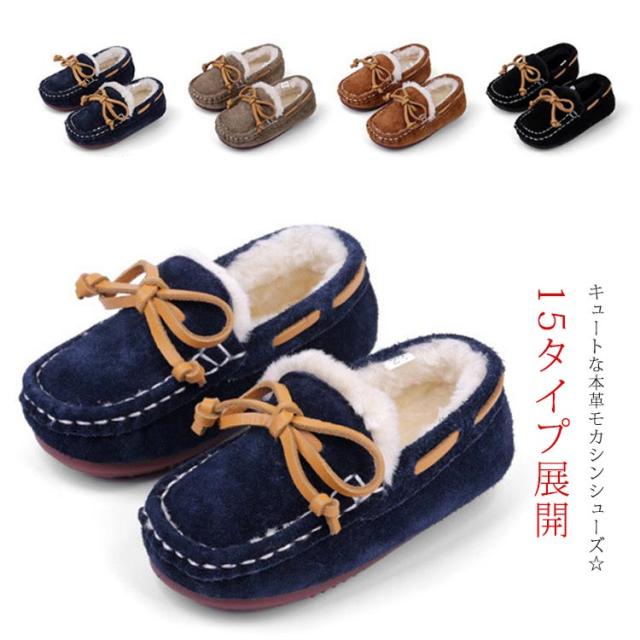 レザー キッズ モカシン 子供靴 スリッポン 本革 モカシンシューズ ボア カジュアルシューズ ベージュ フラットシューズ スウェード ぺたんこ靴 ハンドメイド キャメル ピンク スエード