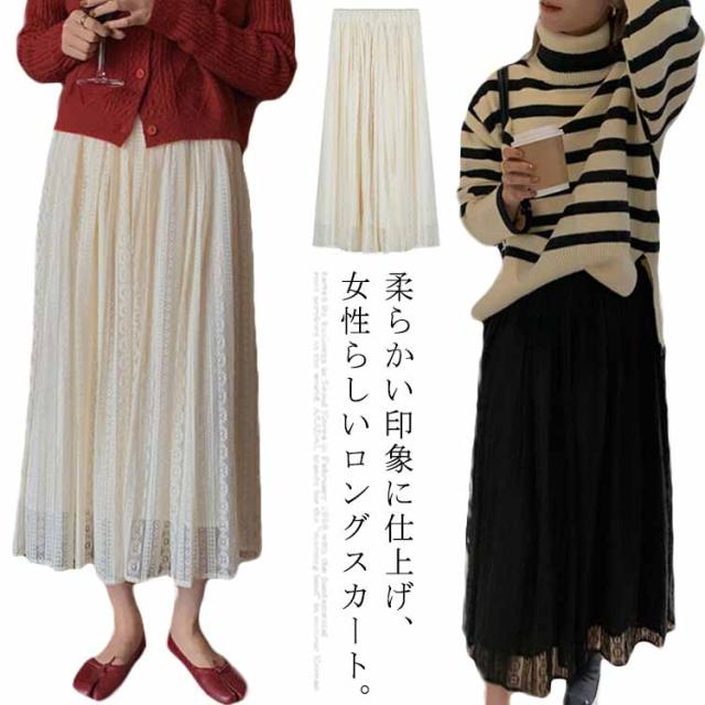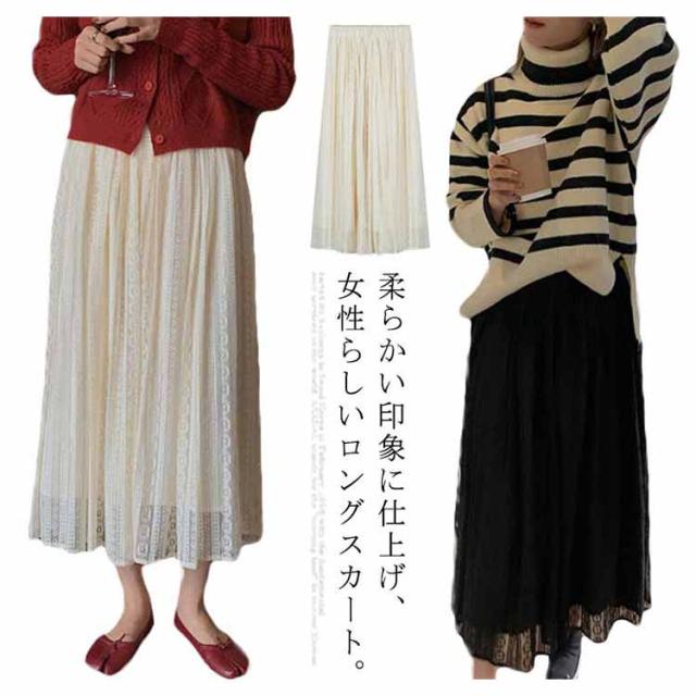 スカート レース aライン スカート レーススカート フレアスカート Aラインスカート ミディアム丈スカート ミモレスカート ボトムス ウエストゴム 大きいサイズ 通勤 OL パーティ 秋 冬 きれいめ