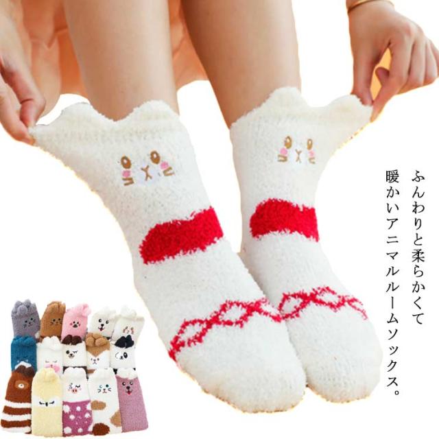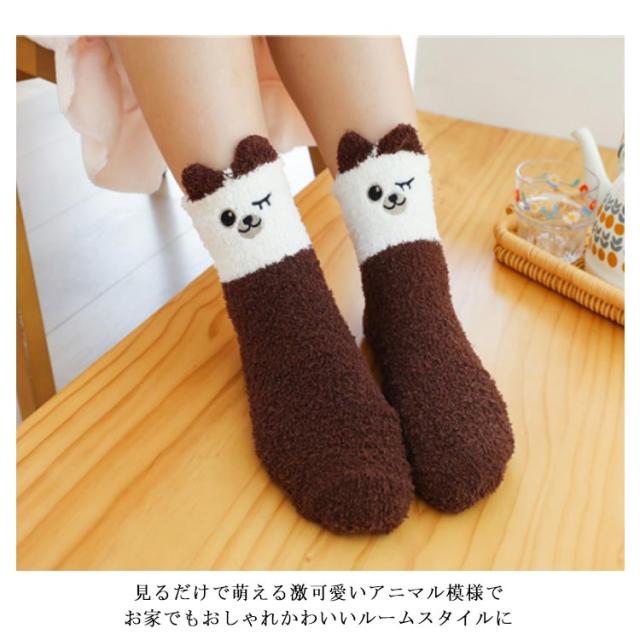 もこもこ靴下 ルームソックス アニマル柄 靴下 もこもこ ソックス 冬 秋冬 あったか 暖かい アニマル柄 可愛い 冷え取り靴下 厚手 ふわふわ ルームウエア レディース プレゼント ギフト 小物 かわいい送料無料