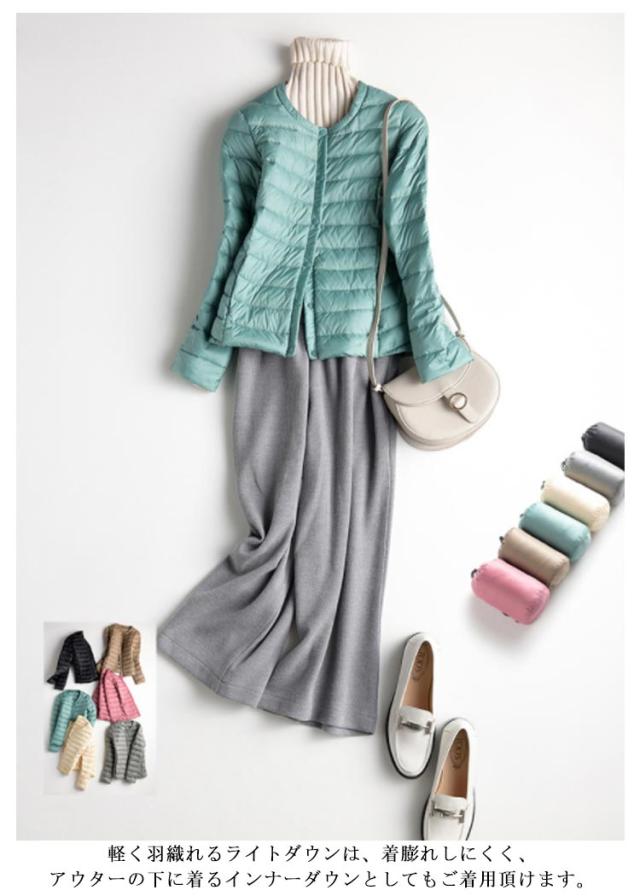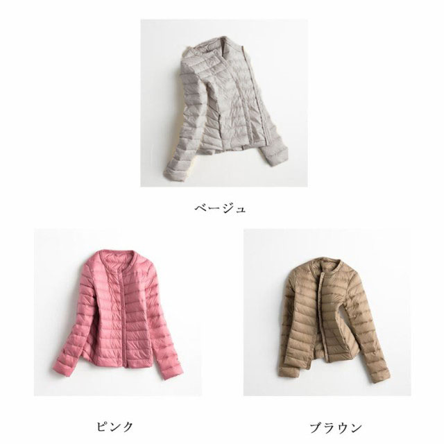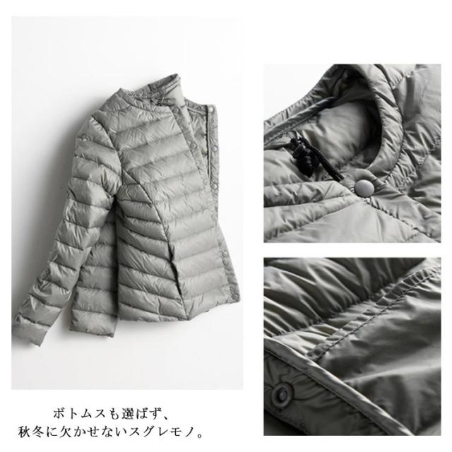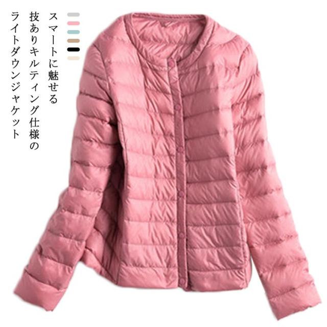 軽い割に暖かい!ダウンジャケット レディース ライトダウンジャケット 軽量 ダウンコート ダウン ジャケット アウター ノーカラー クルーネック シンプル 無地 秋冬 おしゃれ