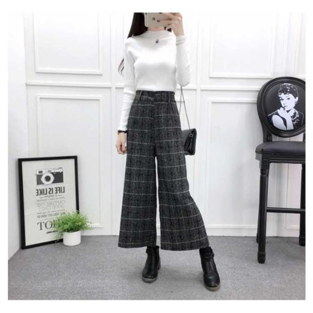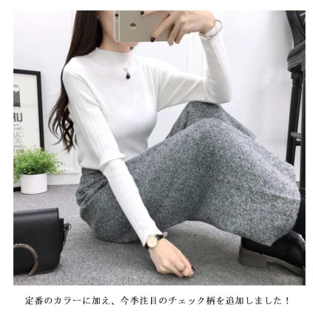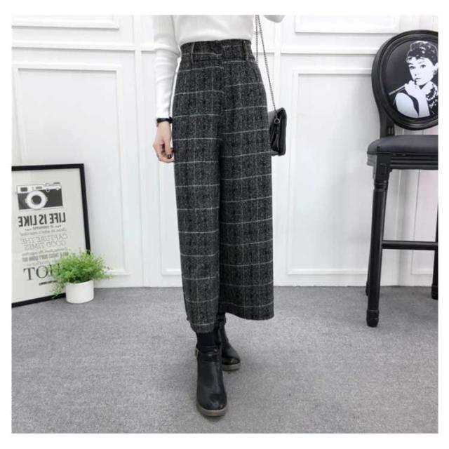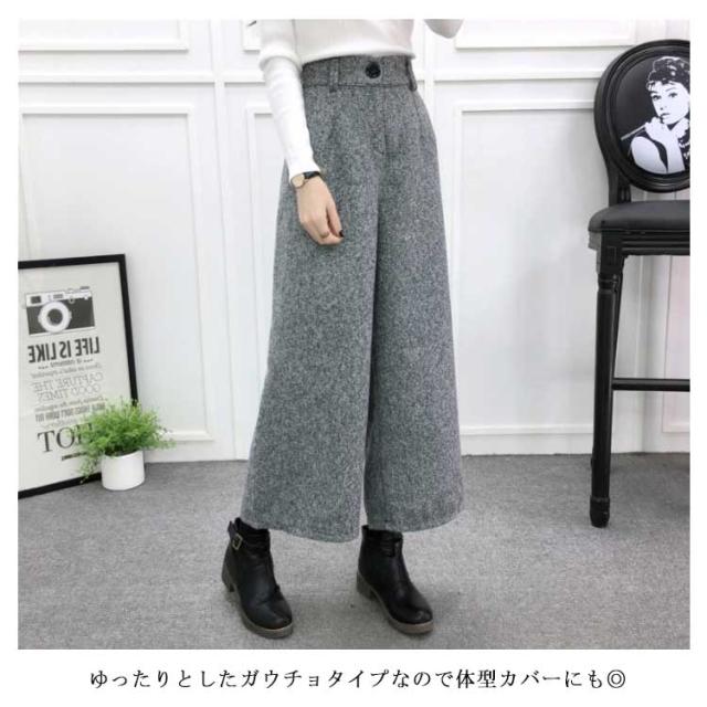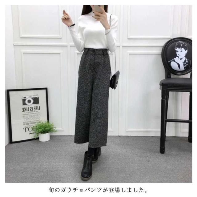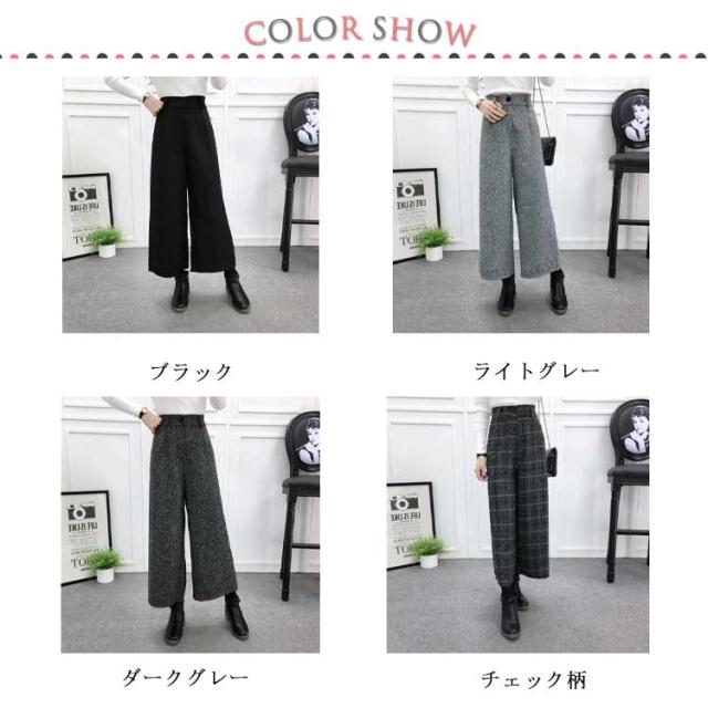 ガウチョパンツ 秋冬 レディース ワイドパンツ ロング丈 ミモレ丈 無地 チェック ガウチョ パンツ ハイウエスト ウエストゴム ウール調 ボトムス 大人 美脚