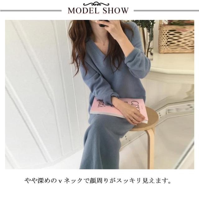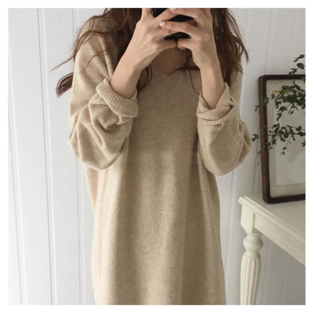 | 大人可愛いVネックロング丈ニットワンピース♪ ワイドサイズのニットが可愛らしさを演出。 やや深めのvネックで顔周りがスッキリ見えます。 ダボっと着用出来るサイズ感は、女の子の為の1枚です。 ゆるっとしているのにぬけ感が大人かわいいニットです♪ | |