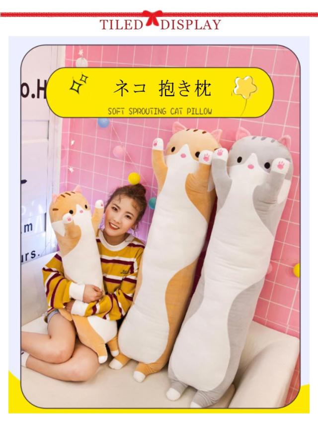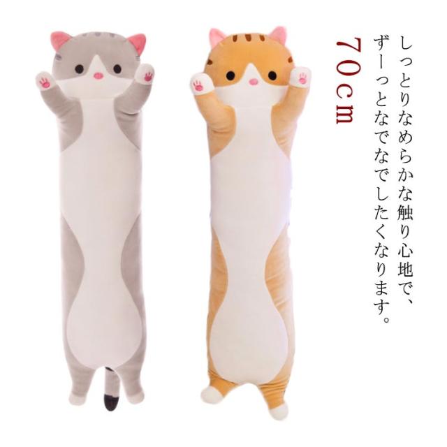 ネコ 抱き枕 クッション ぬいぐるみ 70cm お昼寝枕 車内用 インテリア 子供 ベビー おもちゃ 動物 アニマル ふわふわ 柔らか やわらか 伸び伸び プレゼント 出産祝い 癒しグッズ