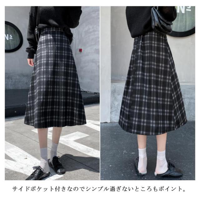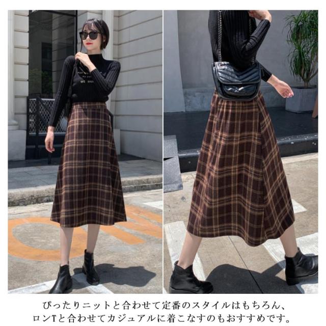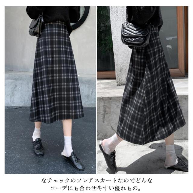 フェイク ミモレ丈 チェック 秋冬 無地 Aラインスカート ミモレ ミディ丈 ウエストゴム フレアスカート スカート 上品 ひざ下 レディース ロング シンプル 裏地 Aライン フレア 膝下 秋 冬 春 カジュアル 清楚
