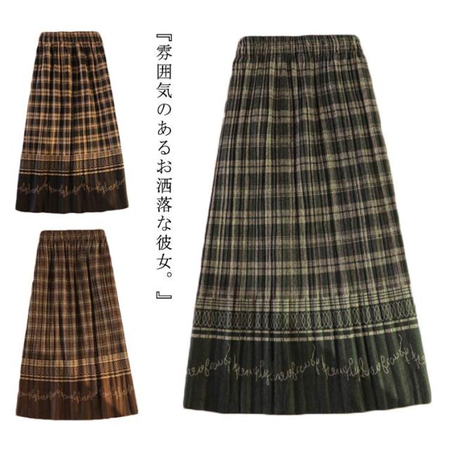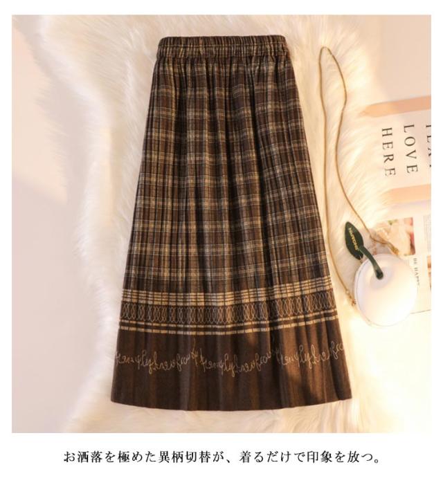 異素材 スカート プリーツスカート ロングスカート 秋スカート 切替 配色 プリーツ 切替 ロングスカート 冬スカート こだわり チェックスカート ブラック ブルー ロング