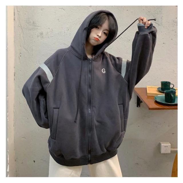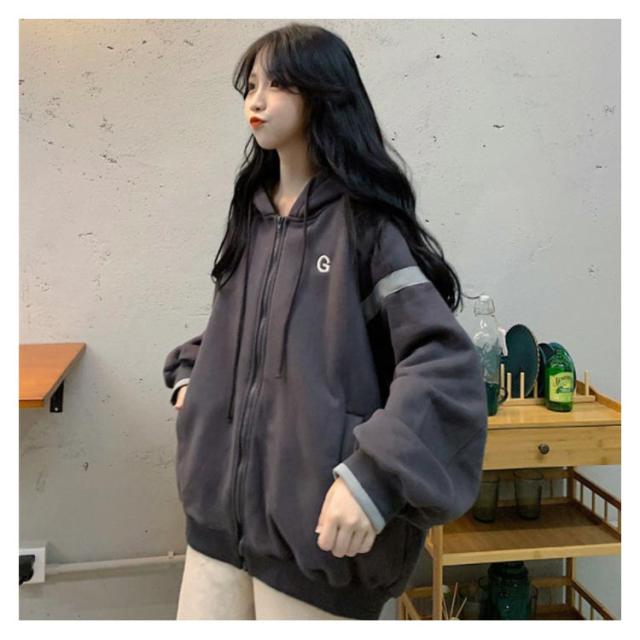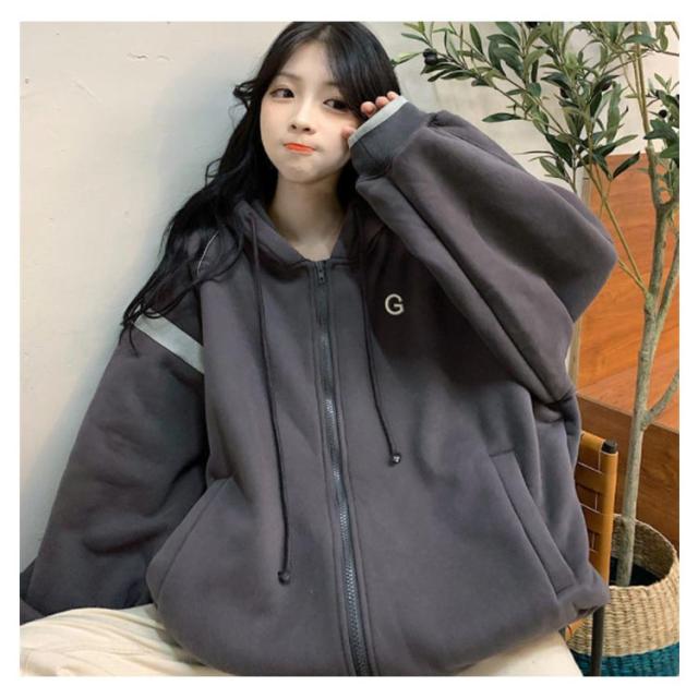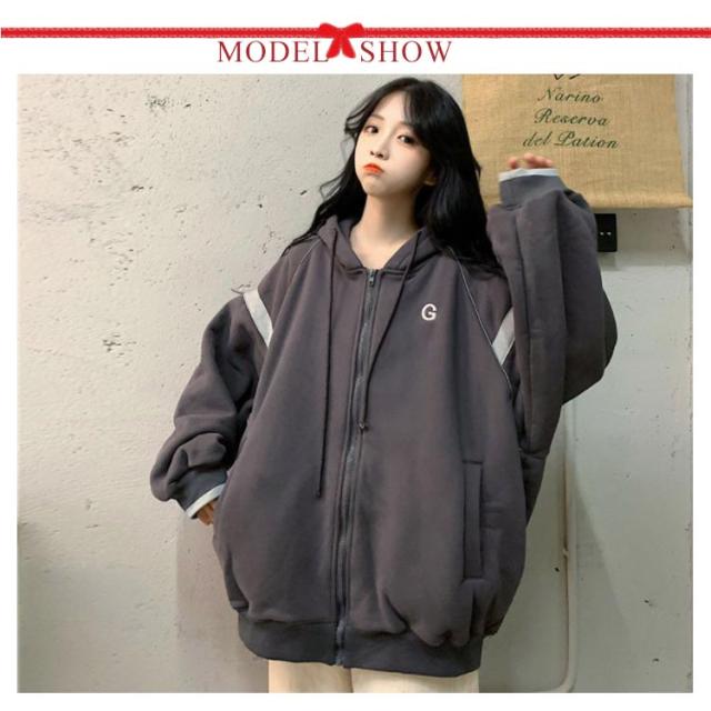 | ゆるっとしたビッグシルエットのジップアップパーカー。 ふわふわ裏起毛が着心地抜群!! 長めの丈感がお尻を程よく隠してくれます。 これからの季節体温調節に便利なアイテムです。 | |