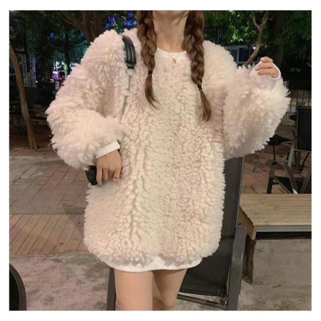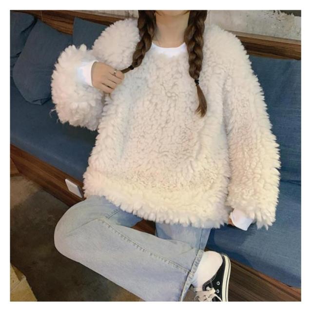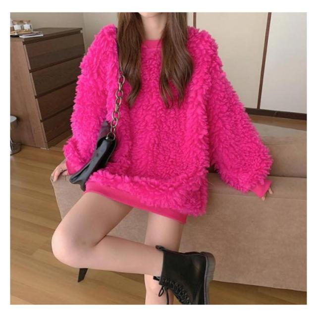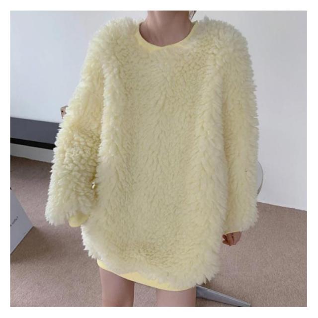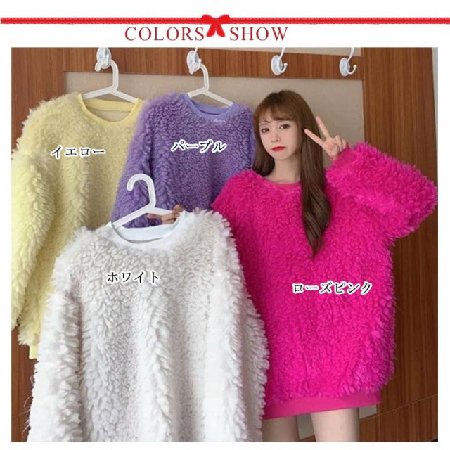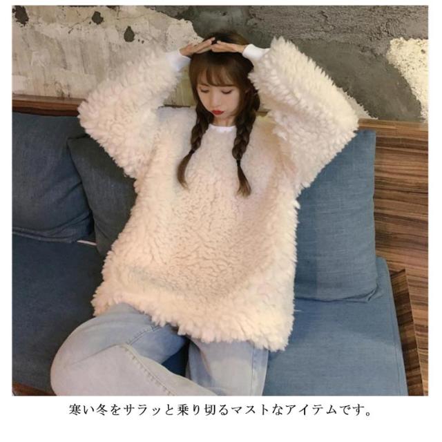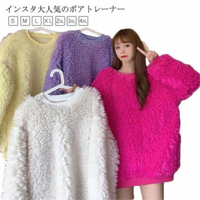 ボアクルーネックトレーナー レディース ボア 秋冬 おしゃれ トレーナー トレーナー シンプル インスタ映え フリース トップス 韓国 ファッション 冬服 秋 秋服