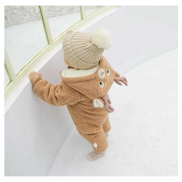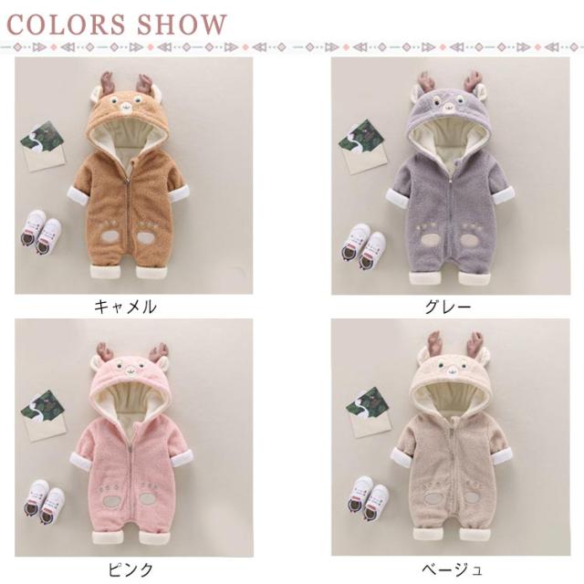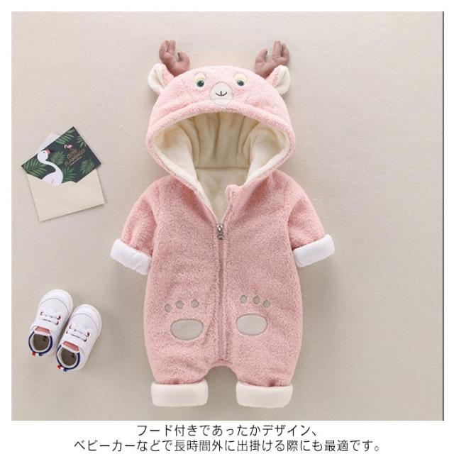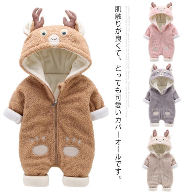 男の子 カバーオール ベビー服 着ぐるみ ロンパース コスチューム 前開き 耳付き 裏ボア 新生児服 秋冬用 フード付き パジャマ 防寒着 赤ちゃん お出かけ 可愛い 女の子
