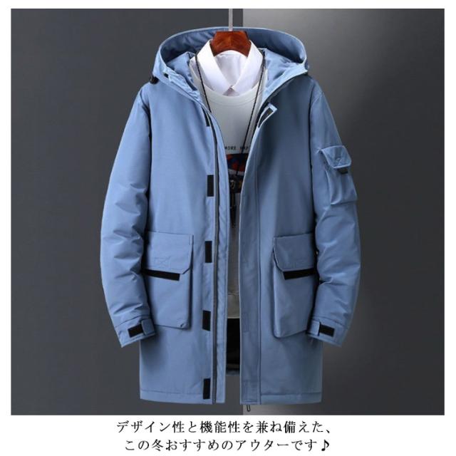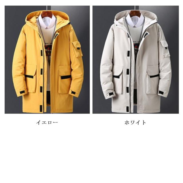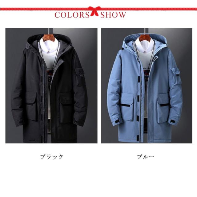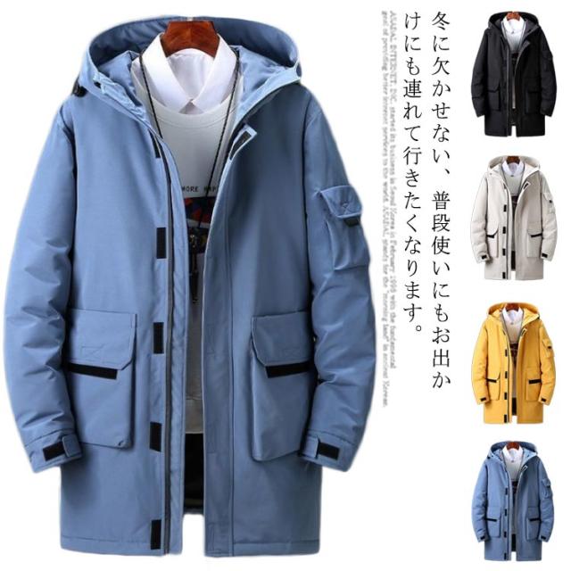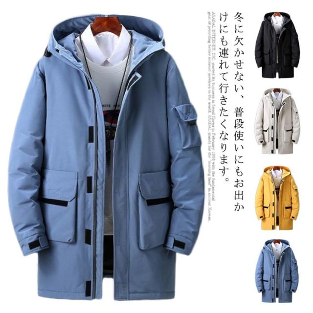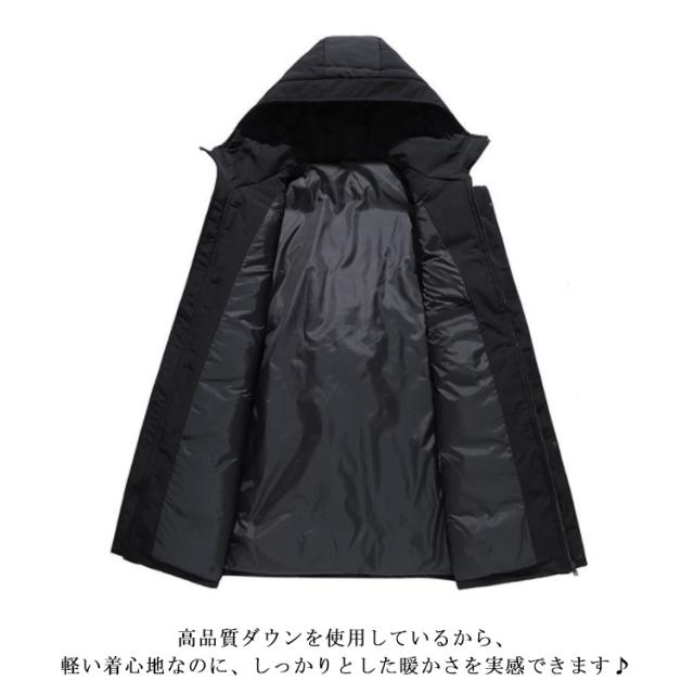 ダウンジャケット フード付き メンズ ロング丈 90%ダウン アウター 中綿ジャケット 全4色 冬服 防寒 ロング丈 厚手 防風 30代 ダウンコート