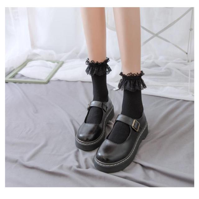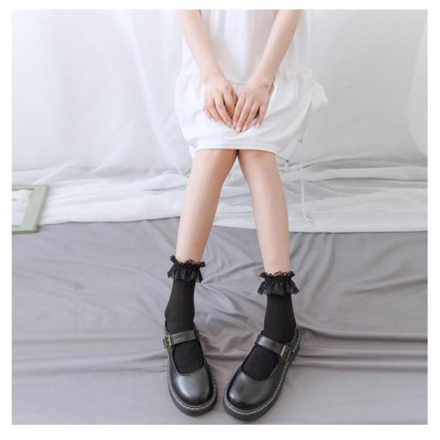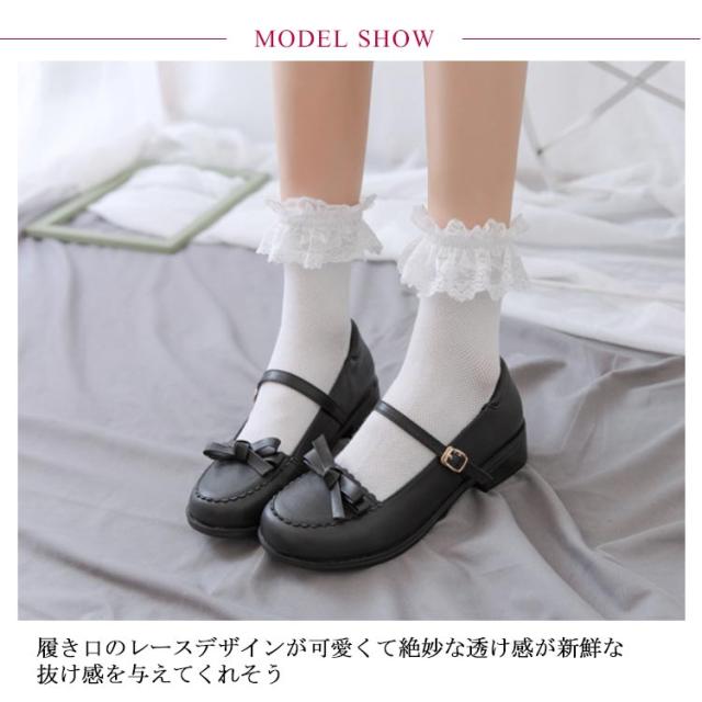 2足セット 靴下 レディース レース靴下 フリルレースクルーソックス ソックス 透け感 履き口レース かわいい シースルー レース かわいい ロリータ 無地 透け