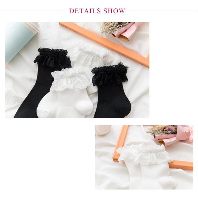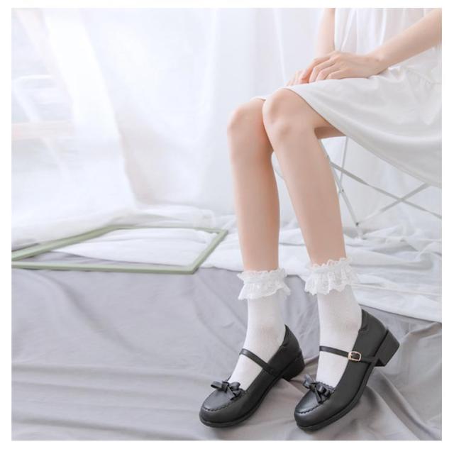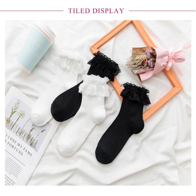 | ふんわりとしたレースが華やかな印象のソックス 履き口のレースデザインが可愛くて絶妙な透け感が新鮮な抜け感を与えてくれそう 軽い履き心地がクセになりそうです、コーディネートのアクセントになるデザインが嬉しいです ふんわりと広がるレースは歩くたびに揺れる存在感を発揮 | |
