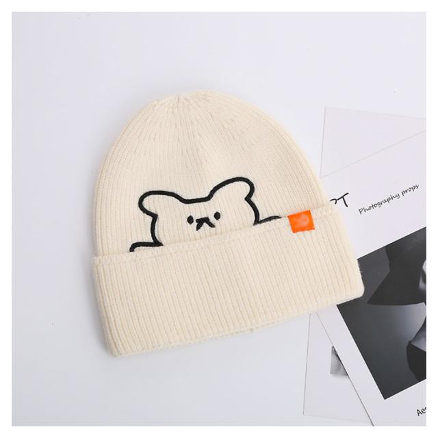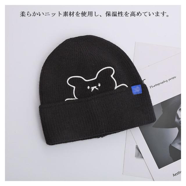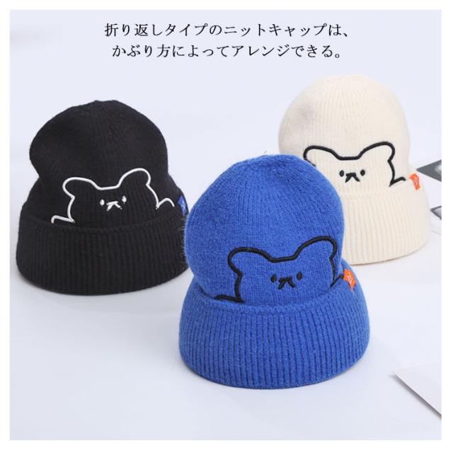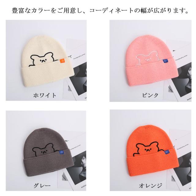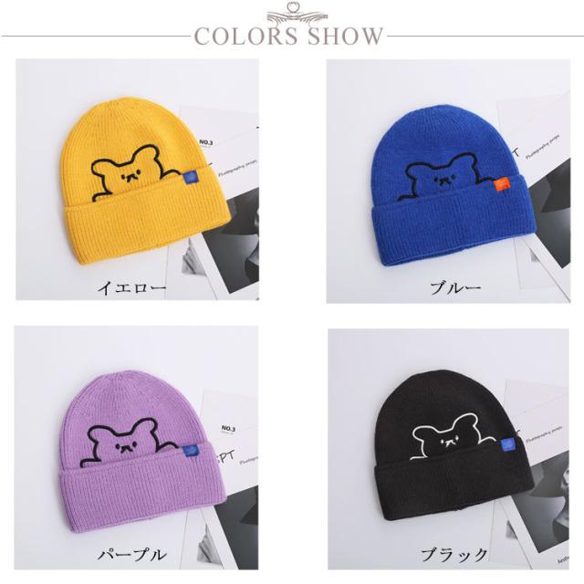 くま ニット帽 秋冬 防寒 熊 かわいい クマ おしゃれ 暖かい 刺繍 カラフル ギフト ファッション シンプル 帽子 伸縮性 柔らかい レディース ニットキャップ 医療用帽子 プレゼント 保温