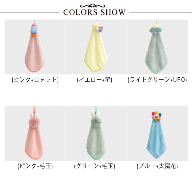 | かわいいハンドタオル 色んな柄飾りがついたかわいいループ付キタオルです。 ルーブがついているのでフックなどに引っ掛けてサッと使えて便利♪ 抜群な速乾性と吸水性を持って、ずいぶん水分を吸収でき、肌は瞬間にさっぱりしてきます。 可愛い柄のデザインで、手を洗うのが嫌いなお子様も可愛いタオルで気分アップでしょう。 | |