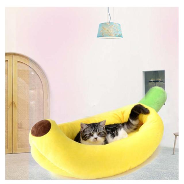 バナナ ペットベッド ペットハウス バナナボート 猫 犬 小型犬 中型犬 かわいい ペット用寝袋 猫用ベッド 犬用品 猫用品 ペット用品 クッション ペットソファ XS S 洗える 防湿 寝床 小動物用 冬 寝袋 四季適用 イエロー 柔らかい ふわふわ