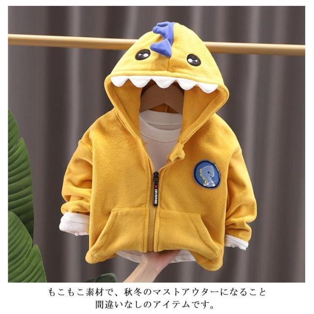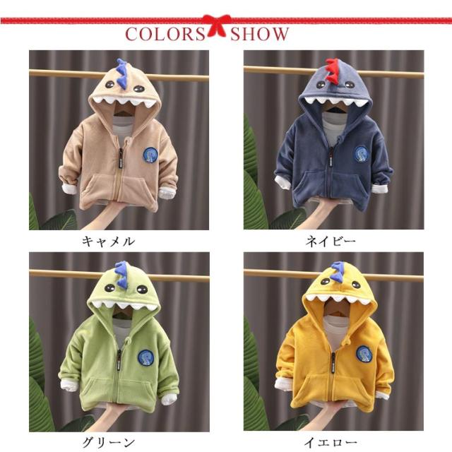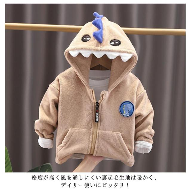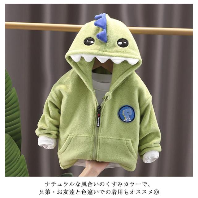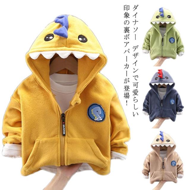 男の子 ベビー ボアパーカー 110cm 裏ボア コート キッズ ダイナソー 裏起毛 アウター 子供服 ジュニア ボーイズ 赤ちゃん 防寒 フリース ジップアップパーカー 73cm 80cm 90cm 100cm ジャケット