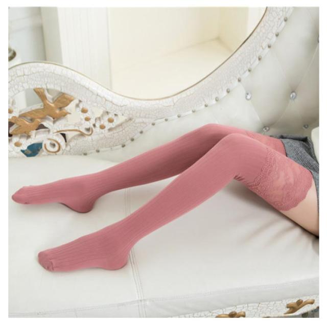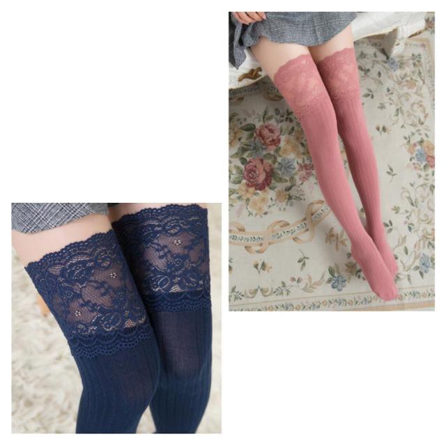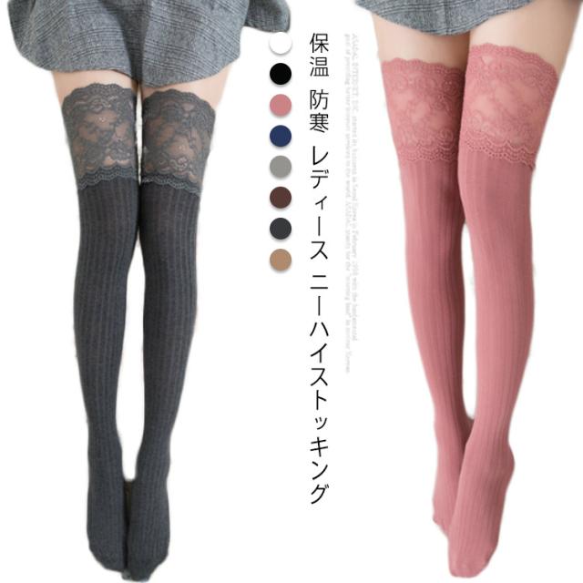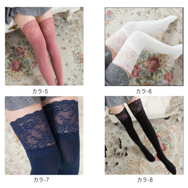 ハイソックス 春秋 オーバーニーソックス 保温 防寒 ロングソックス ニーハイストッキング 厚手 美脚 花柄レース レディース 通学 通勤 ストレッチ 可愛い