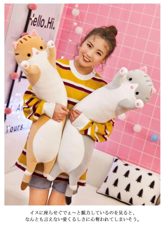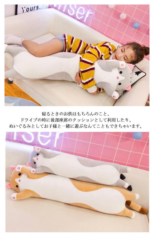 ベビー 子供 やわらか ネコ アニマル 90cm クッション インテリア ぬいぐるみ 車内用 おもちゃ 動物 お昼寝枕 ふわふわ 柔らか 抱き枕 伸び伸び プレゼント 出産祝い 抱き枕