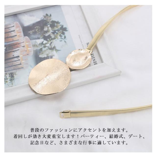 | デザイン性が高くウエストマークに使っても存在感抜群!オールシーズンにピッタリのデザインです。 金属ベルトは弾力性があり、束縛されていない、非常に快適に着用できます。 ベルトは腰を細くし、体のラインの輪郭を描き、気質をより際立たせます。 シンプルで安全なゴールドのバックルが付いているので、留め金はすばやく留めたり外したりできます。 普段のファッションにアクセントを加えます。着回しが効き大変重宝します!パーティー、結婚式、デート、記念日など、さまざまな行事に適しています。 | |