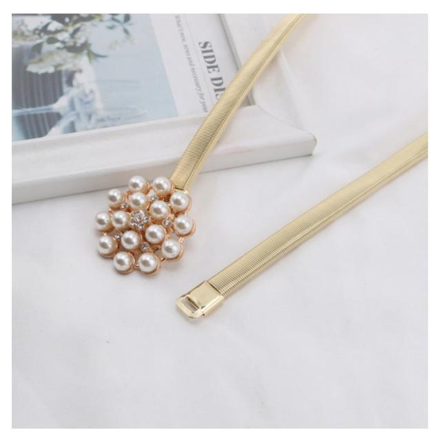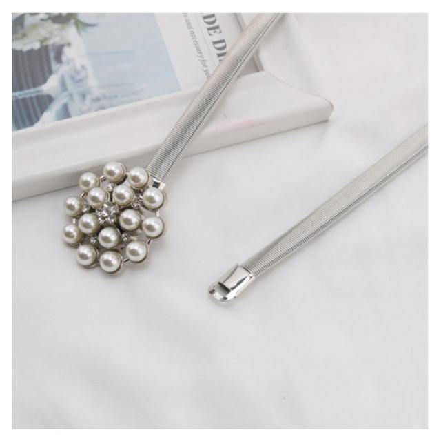 ベルト レディース 細 細ベルト 金属ベルト ウエストチェーン 装飾ベルト パール ダイヤモンド 伸縮性 ストレッチ ファッション小物 スカート ワンピース フォーマル パーティー コーデ 誕生日 プレゼント