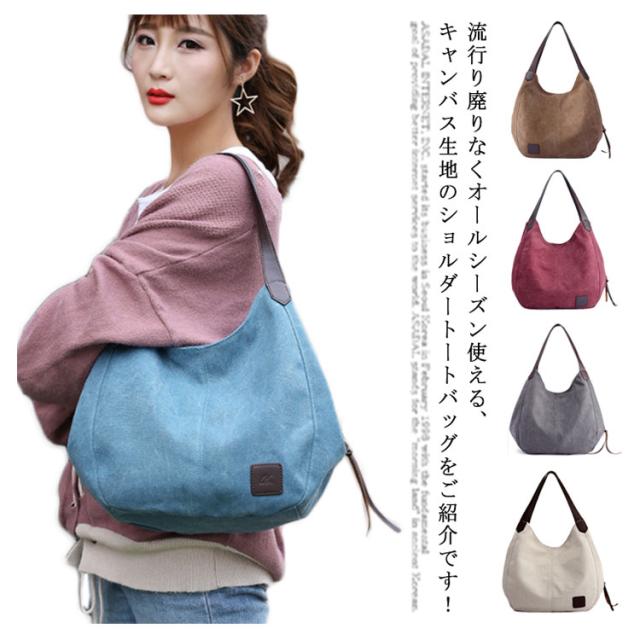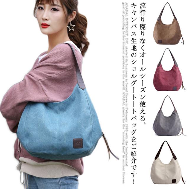 キャンバスバッグ トートバッグ ショルダーバッグ トートバッグ キャンバス ファスナー付き 肩掛け 手提げバッグ レディース かばん 鞄 トート 2way レディース レトロ カジュアル 20代 30代 バッグ